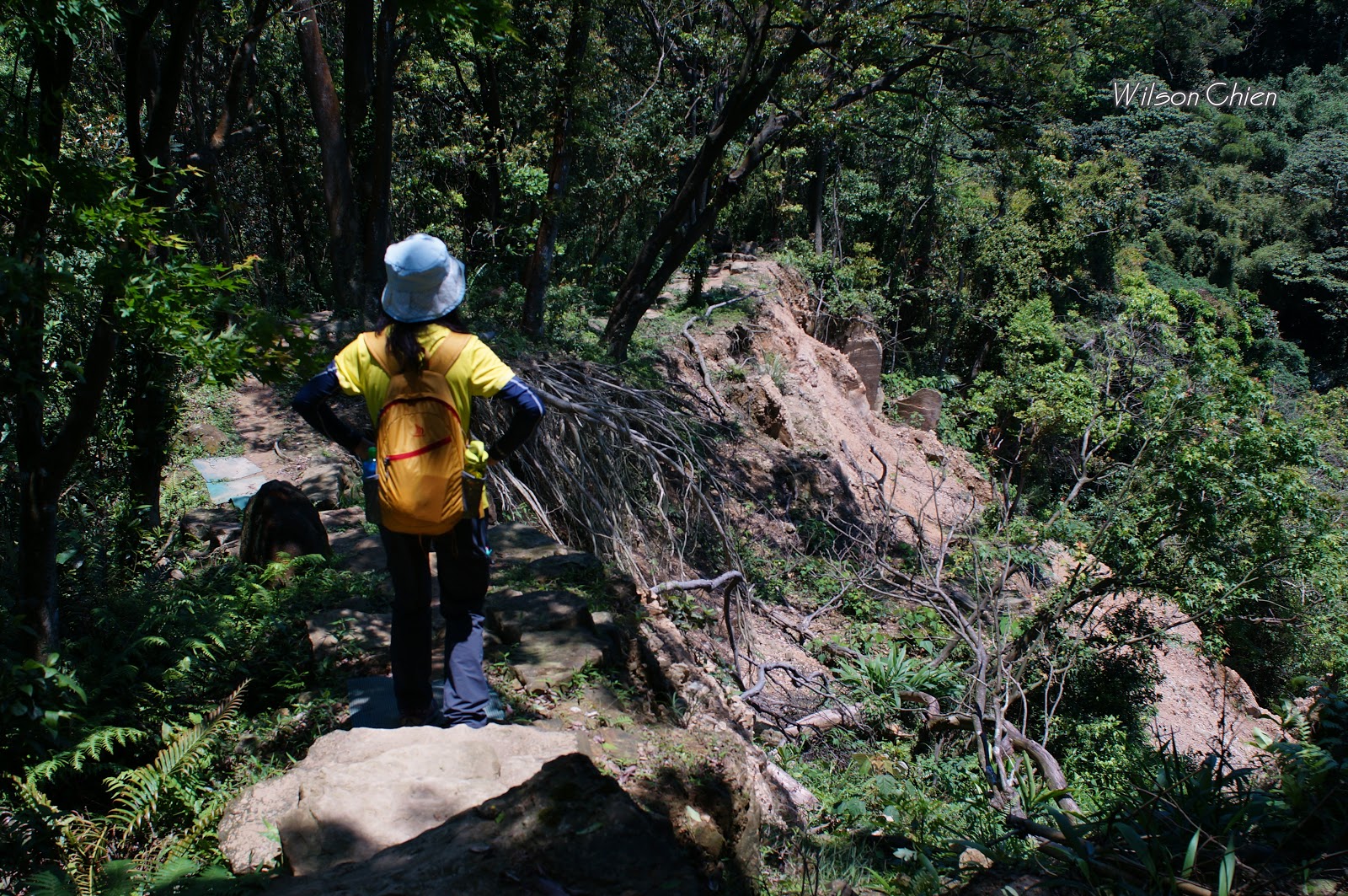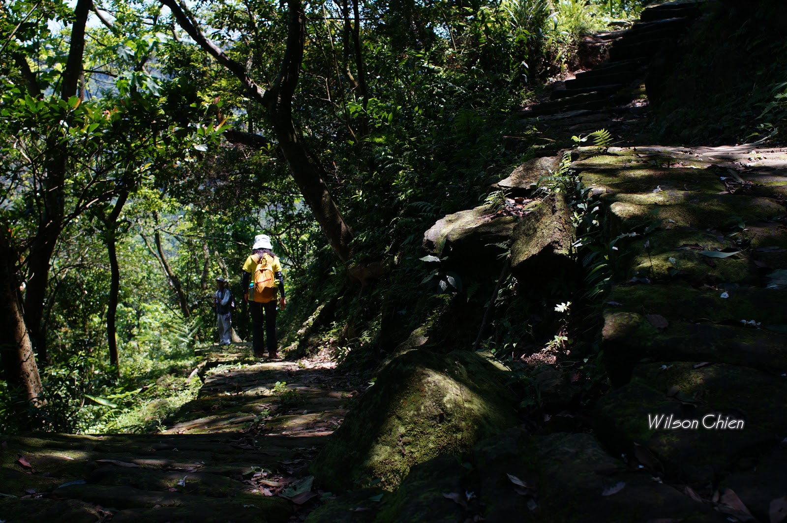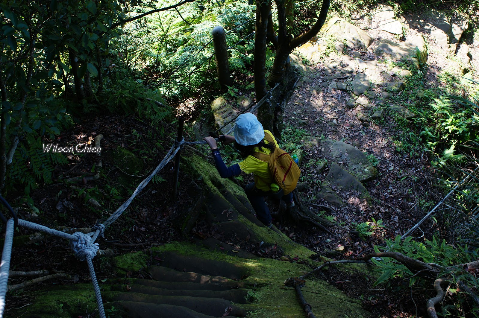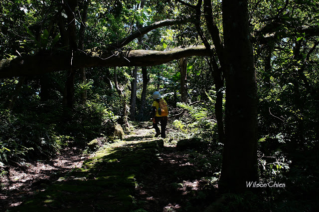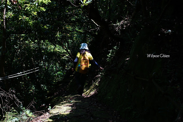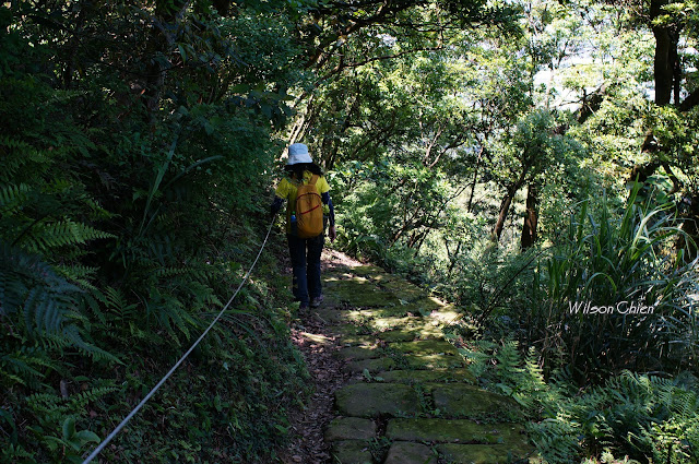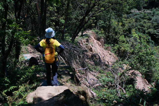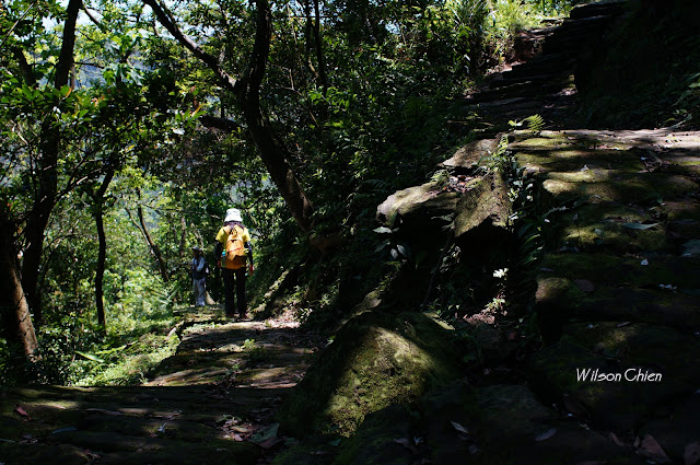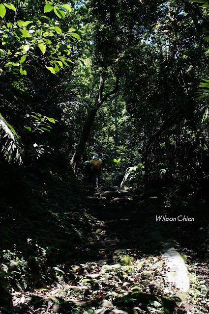 上爬雖滿頭大汗, 但山風徐徐很舒服, 要注意這石階滑滑的, 只好走邊邊