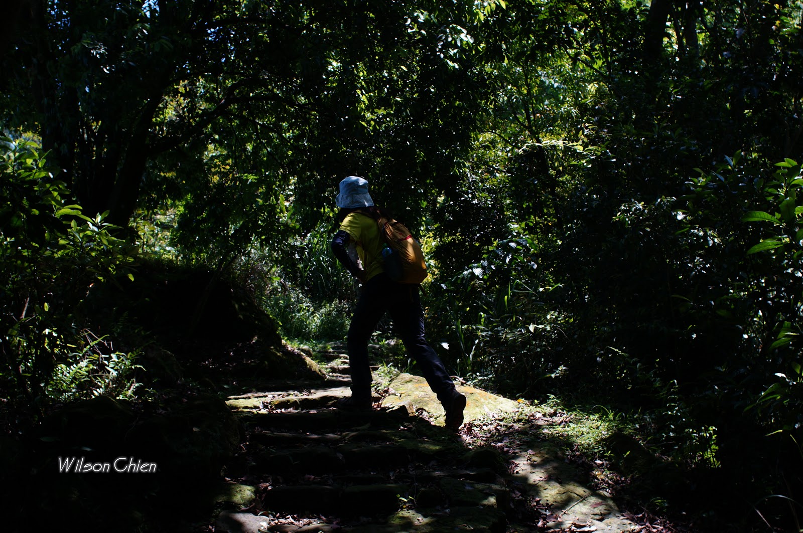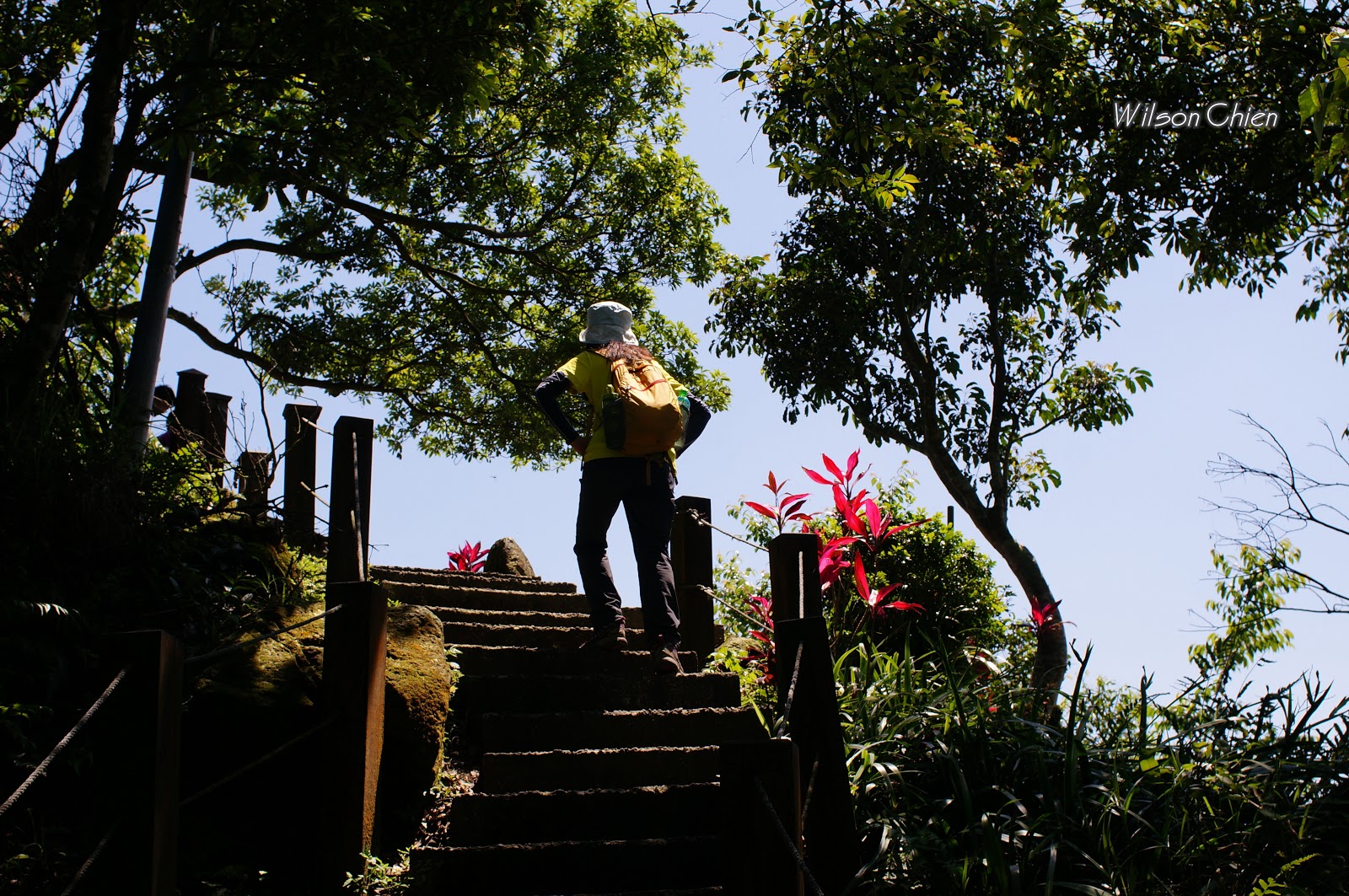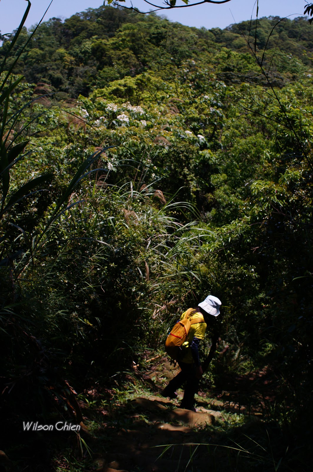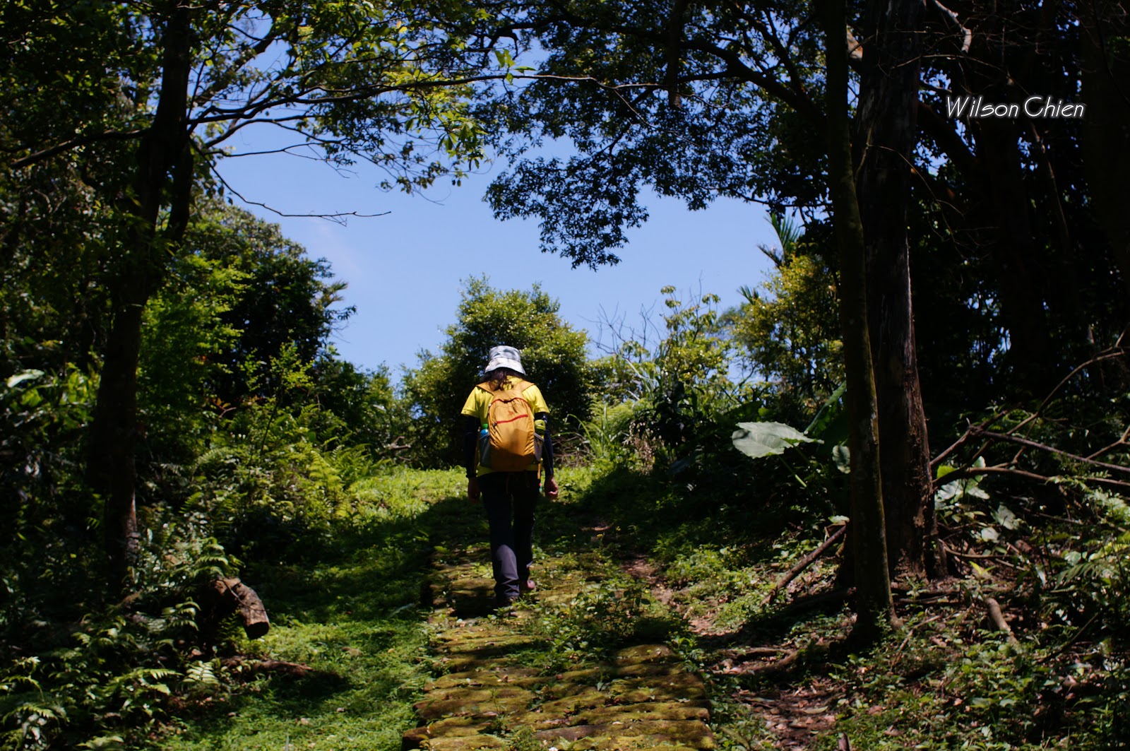 上爬雖滿頭大汗, 但山風徐徐很舒服, 要注意這石階滑滑的, 只好走邊邊