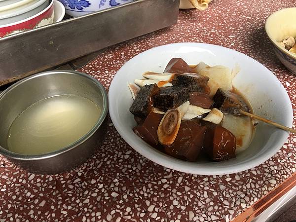 況且這家的滷物還不錯吃,菜頭很鮮甜,腸子也有咬勁。它的用餐自由,想喝湯想添醬,一切自己來。可惜的是,吃完發現原來大鍋鼎底層還有熬煮其他像是骨仔肉等好料,沒點到真令人扼腕。
