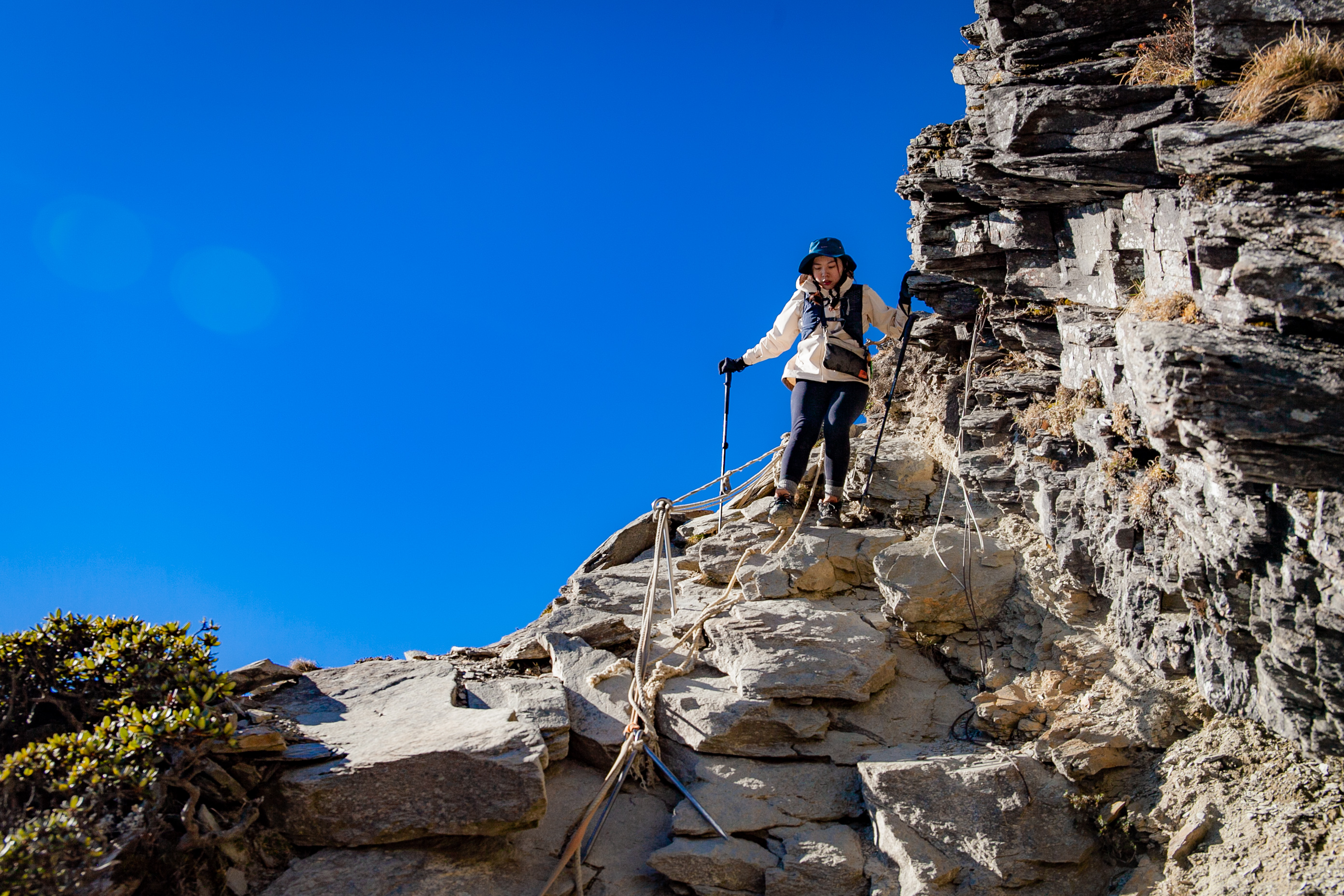 上主峰前一定會經過的牌子。跟吉祥物一樣都是必拍的扛棒。往前走就是卡羅樓斷崖。這時就往走攀爬上主峰囉。