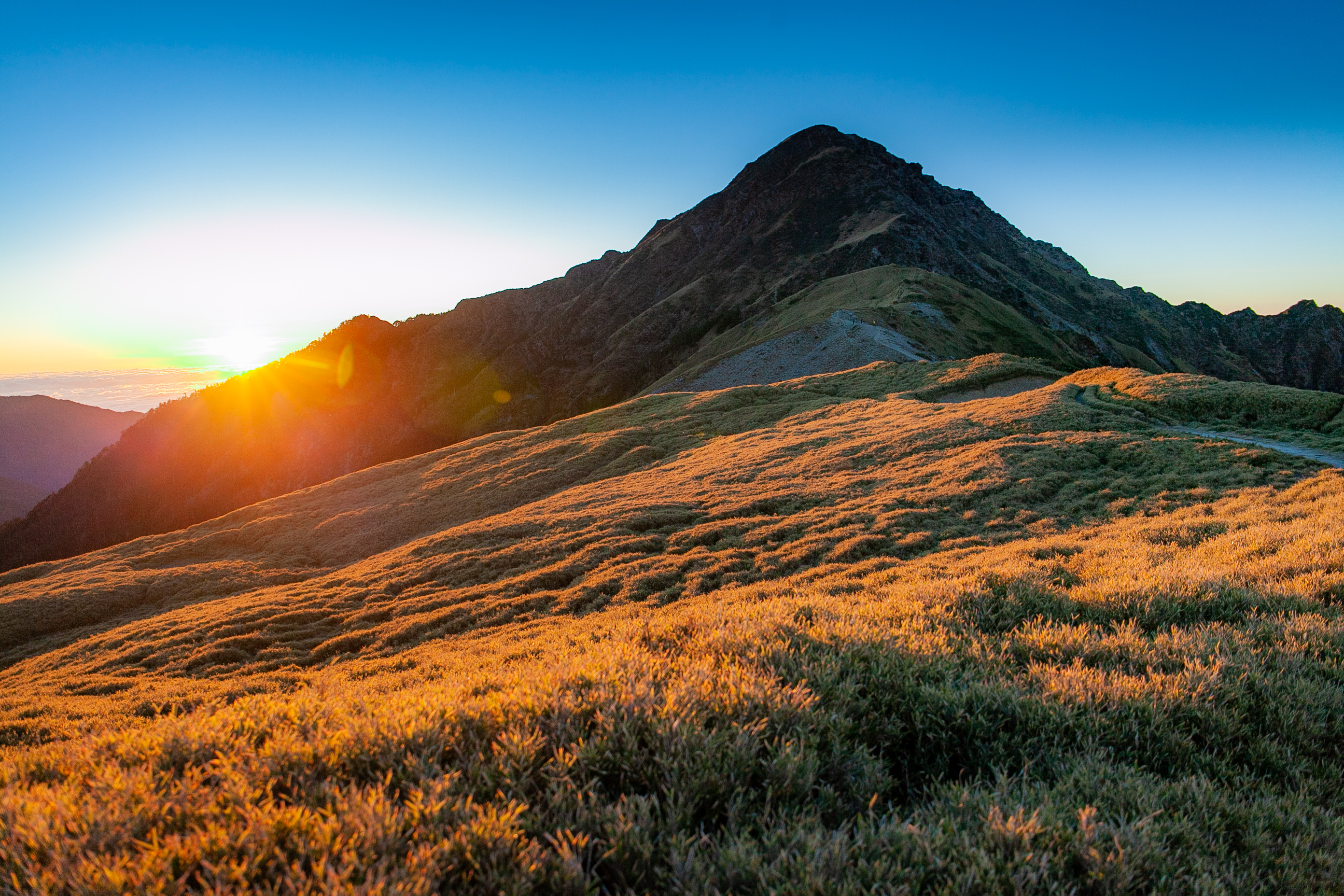 看起來趕不上上三角點看日出了,就選在主峰前的大草原看日出吧。