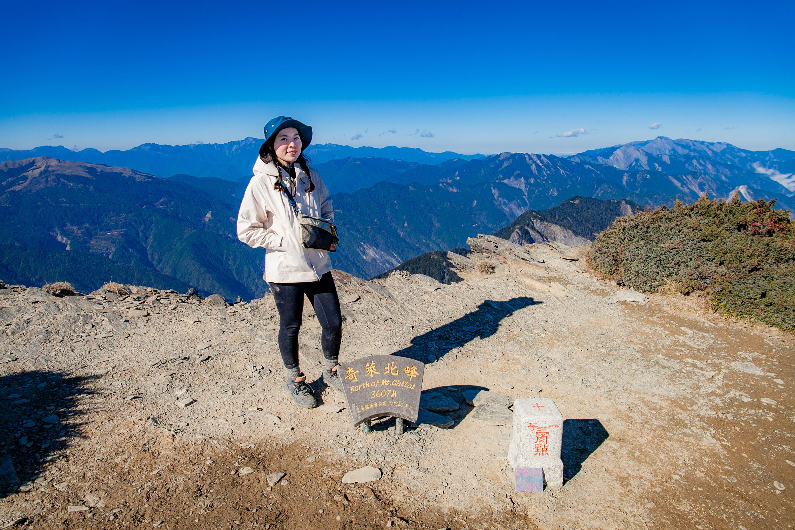 上來三角點後,往前走有塊石頭,幾乎是必拍的景點,但有帶長焦壓縮後會比較好看。這次只有帶24-70mm,壓縮感不夠就覺得還好。