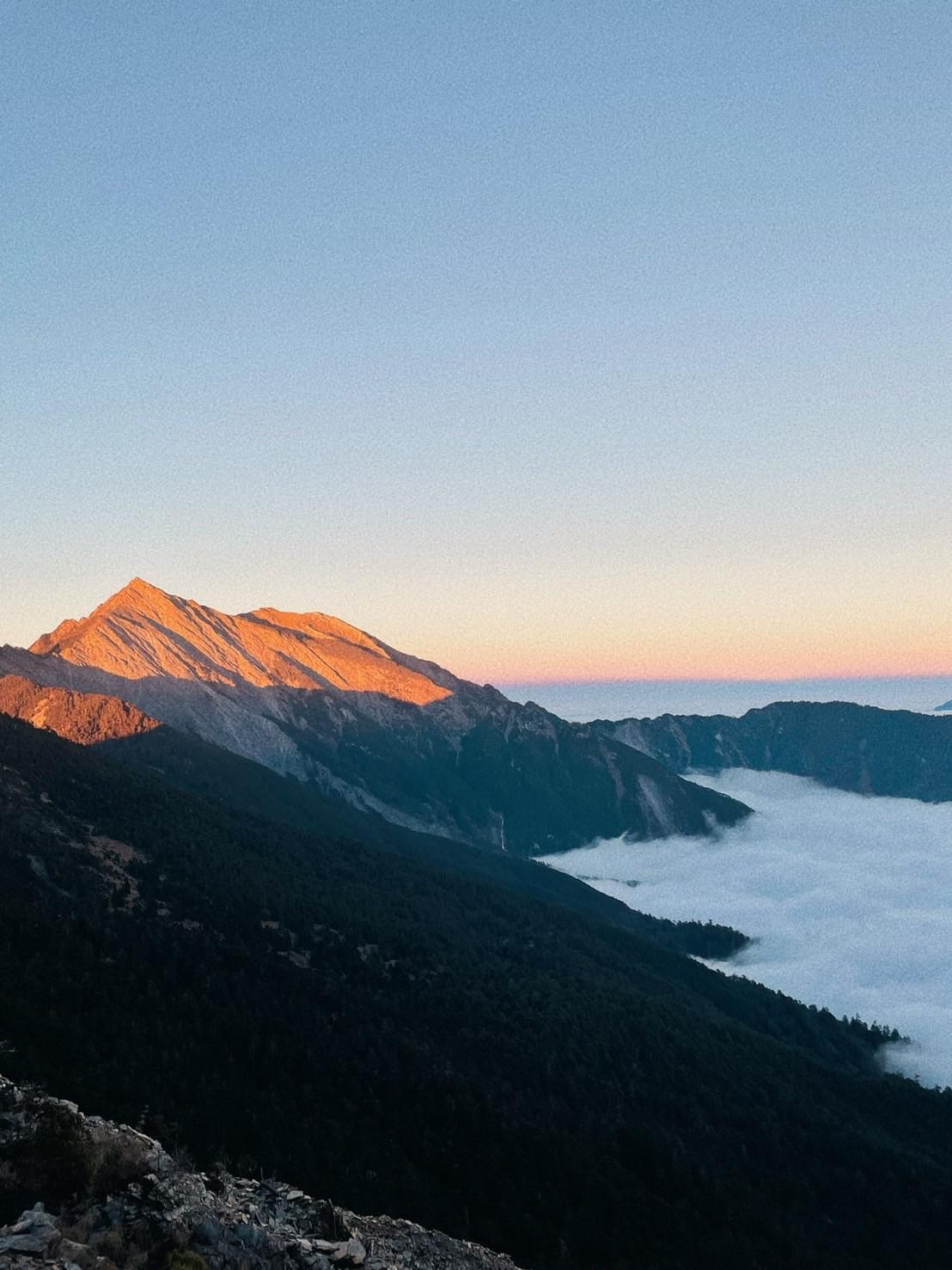 夕陽時刻 中央尖山配上雲海,很浪漫