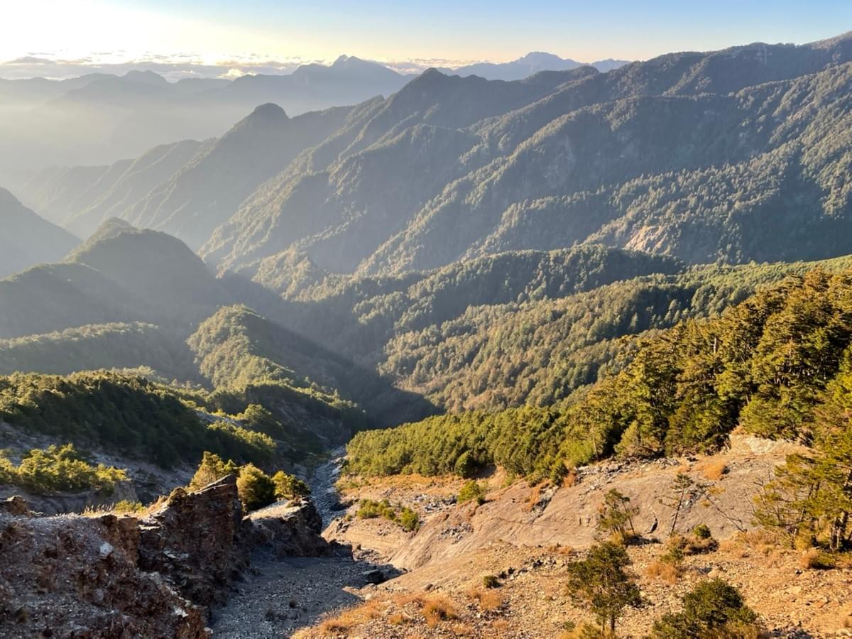 一早摸黑去攻甘薯峰,路途先下再上,路況像白姑或小劍,需要輔助GPX,有幾處拉繩和碎石坡,大部分在箭竹林裡