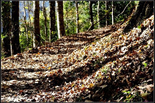 落葉片片,層層溫柔的鋪滿了古道的路面