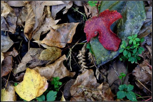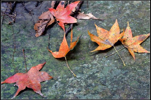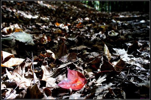 回程中,仍然墊後的我,在趕路之餘,匆忙撿了些楓葉~