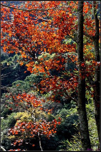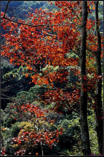 也許,今年的冬天還不夠冷,這一路上的楓紅並不多