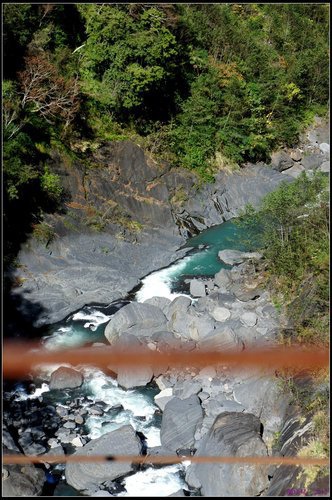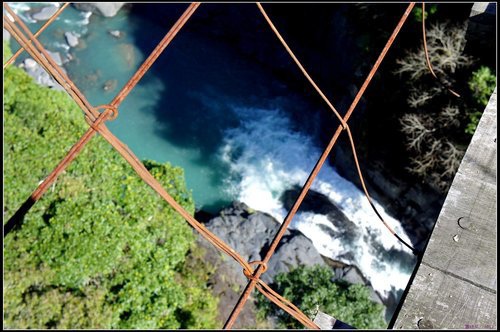 白石吊橋的橋相當高,支持的鐵線空隙很大