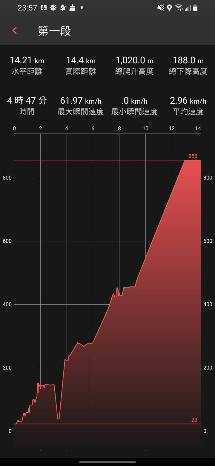 心得:因為這星期已經多次爬山,所以這一次非常的累,基本上到後面是靠著毅力在撐著,所以這個路段不輕鬆的。