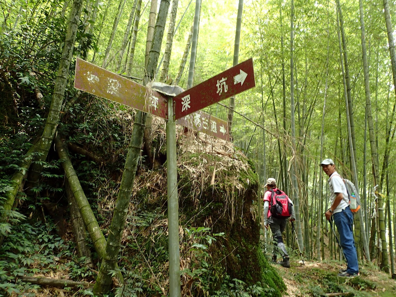 前頭是一片嫩綠青翠的孟宗竹林, 這一路都是爬坡陡上