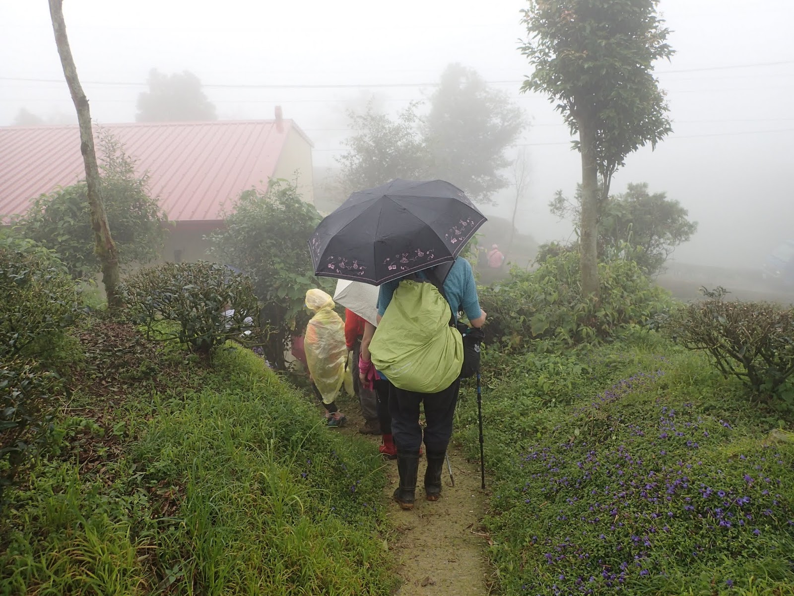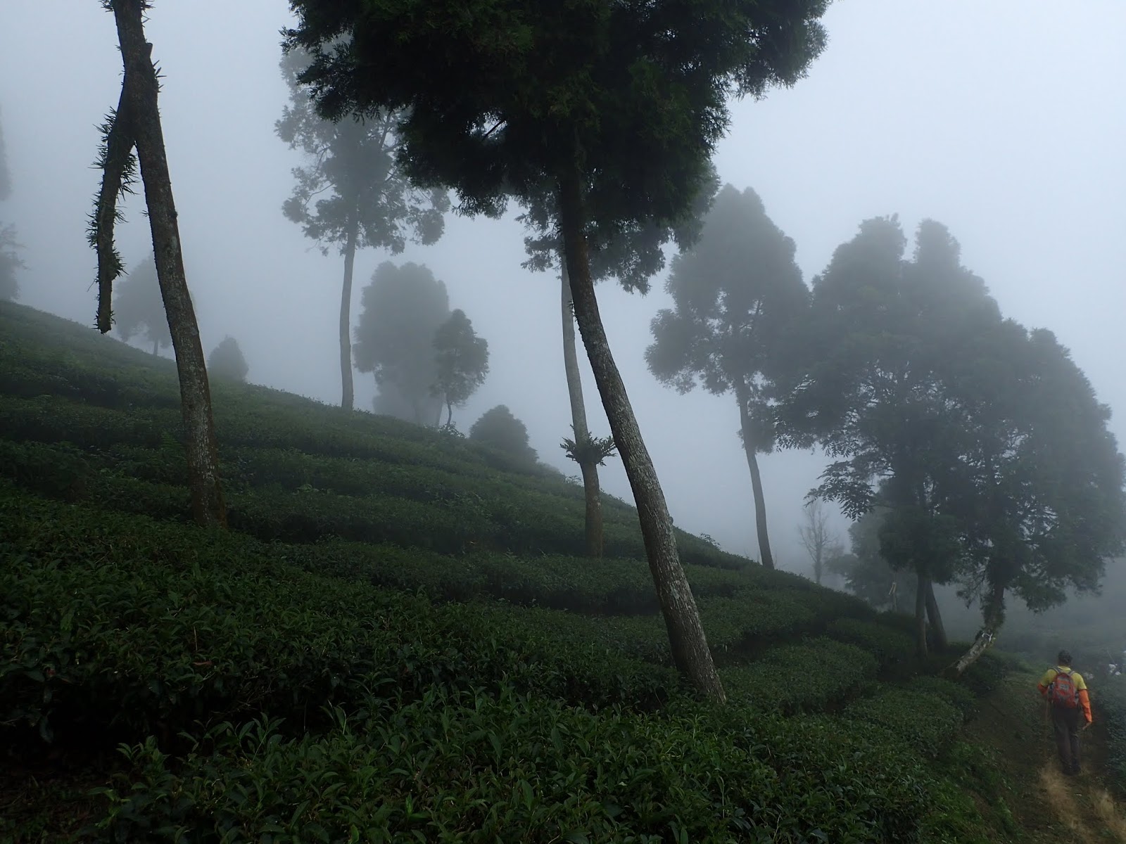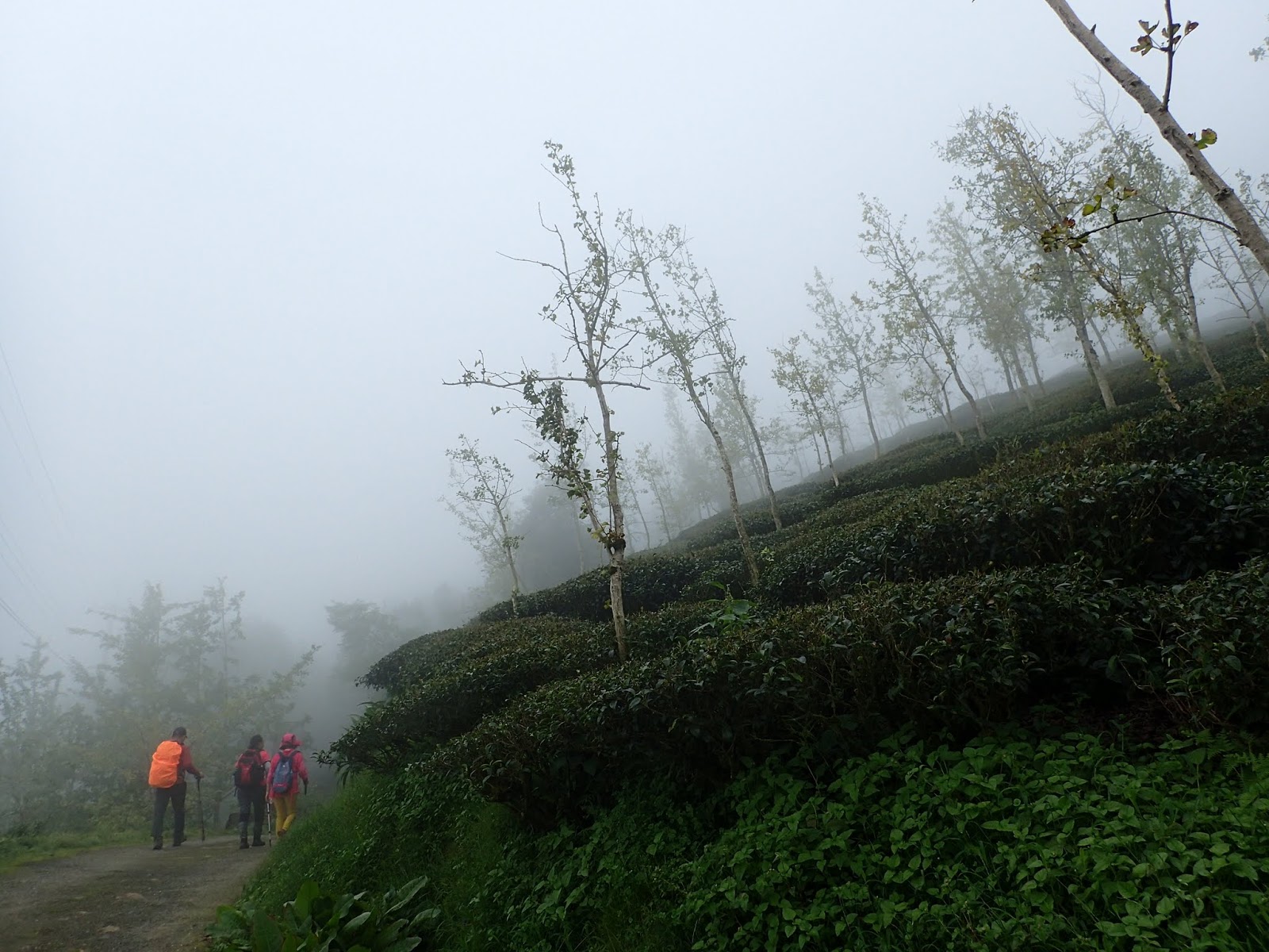 天空逐漸蒙上一層薄霧, 眼前綿延的茶園及樹木一片迷濛, 微風吹過說不出的舒服