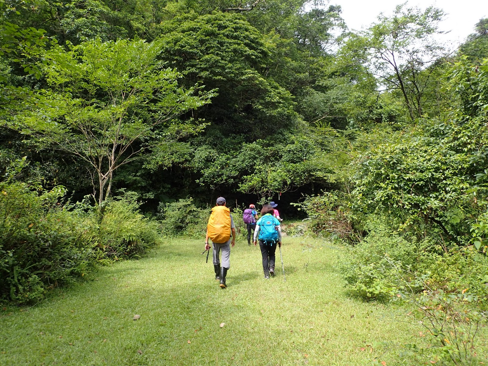 通過夾道的竹林來到一處空曠草坪, 大家都已經在休息了