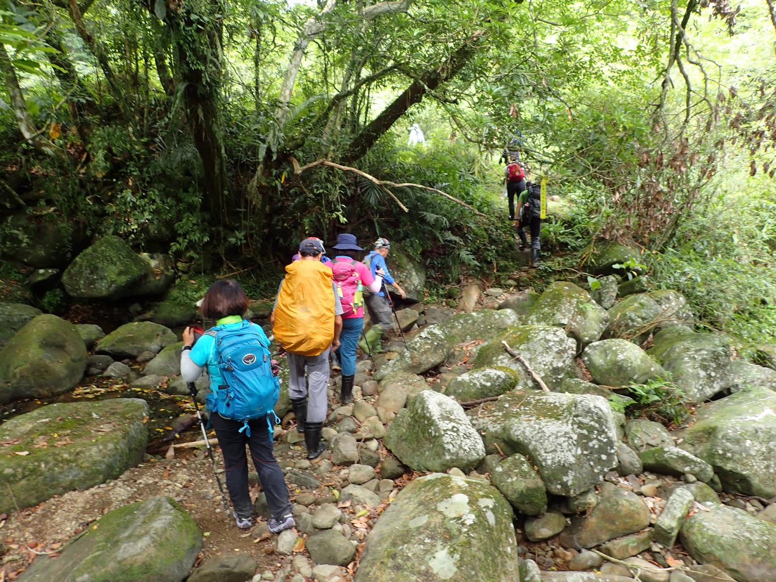 此行參加的山友75人, 中途部分的人留在溪邊戲水游泳, 走完全程42人, 呵呵, 我也是走完全程的一個, 稍有美中不足就是我沒泡到溪水啦!