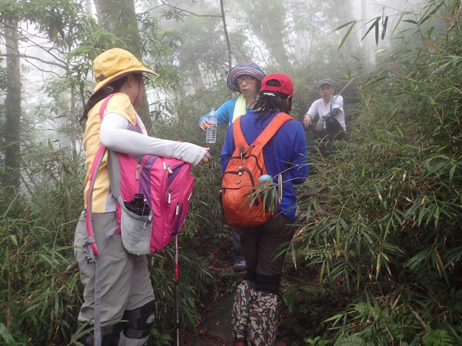 領隊在一旁等我們, 問我們怎麼會走這條路, 沒看到他劃的箭頭嗎? 真的沒看到, 可能是上次曾走過很自然就循著路下來了