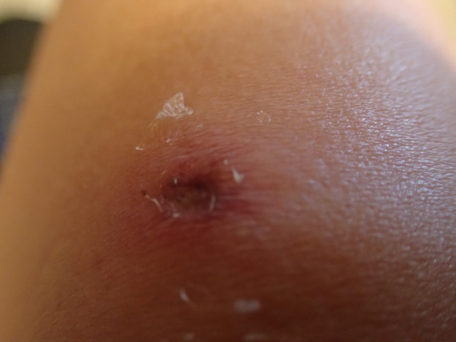 幾天後, 洗澡時突然發現手上臂袖口後面有一個傷口, 約0.5cm大小, 邊邊還有點小水泡周圍有點紅腫, 還帶點癢痛, 不以為意, 自從爬山後, 經常就是大大小小的烏青挫傷, 早就習以為常不大理會