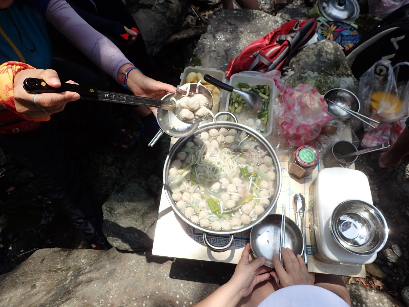 帶來的食物及水果飲料還有些生食先冷藏處理, 大岩石下就是天然的冷藏室