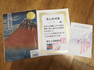 - 富士山登頂證明書 (Yamanashi Prefecture Official Certificate)
