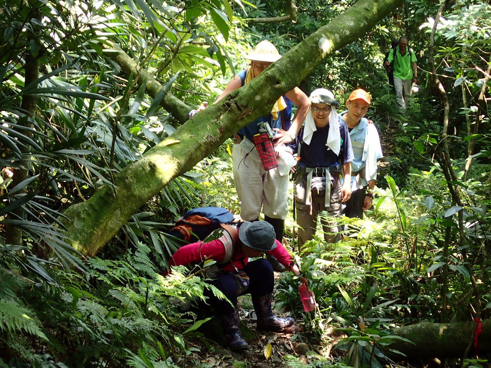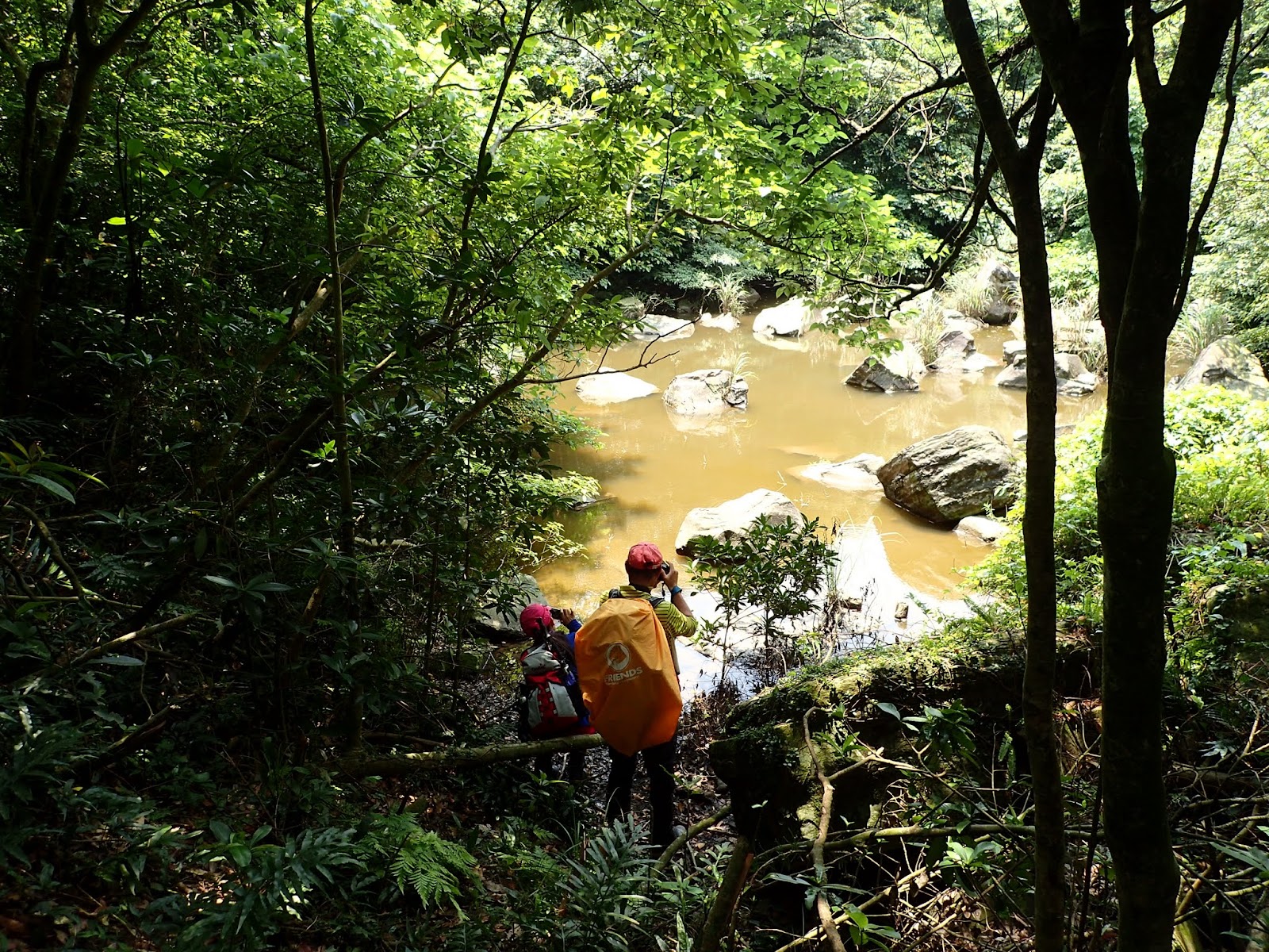 從上面下來要小心, 壓隊大哥人挺好的, 在旁協助大家找踩點