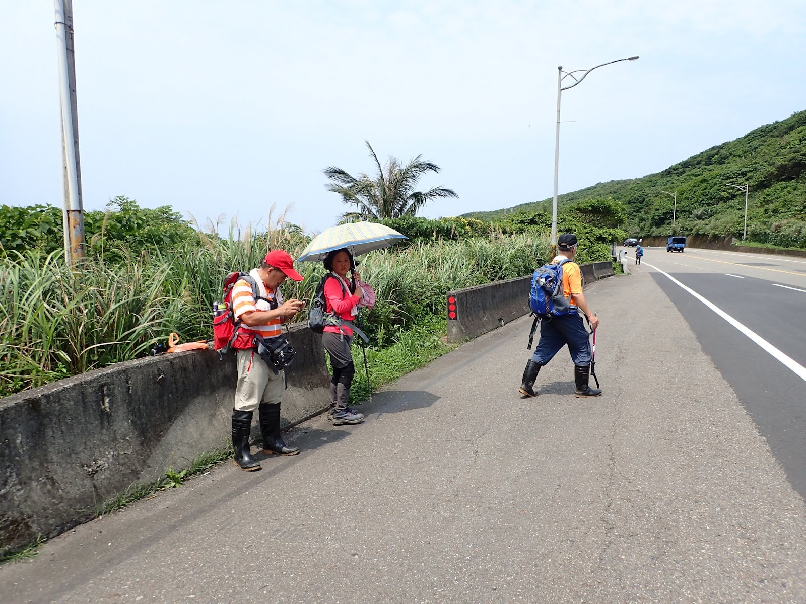 1:20 走出福卯古道南段, 看見大隊長陳大哥在濱海公路對面路口等大家