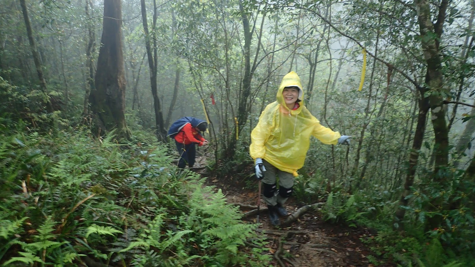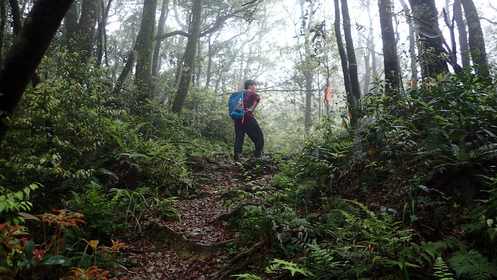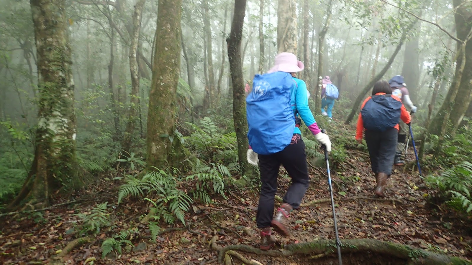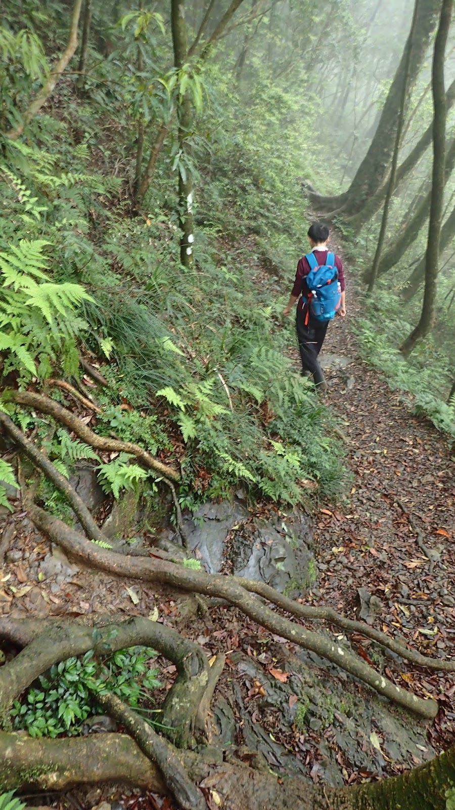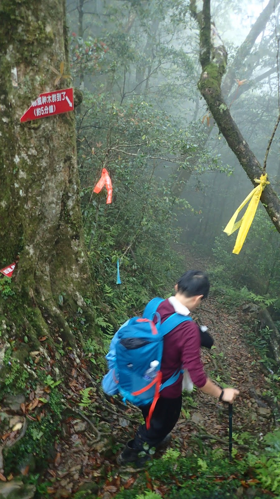 開始時亦步亦趨跟著前面的腳步專注的走, 整片山林一片霧茫茫, 陰陰涼爽的天氣很舒服
