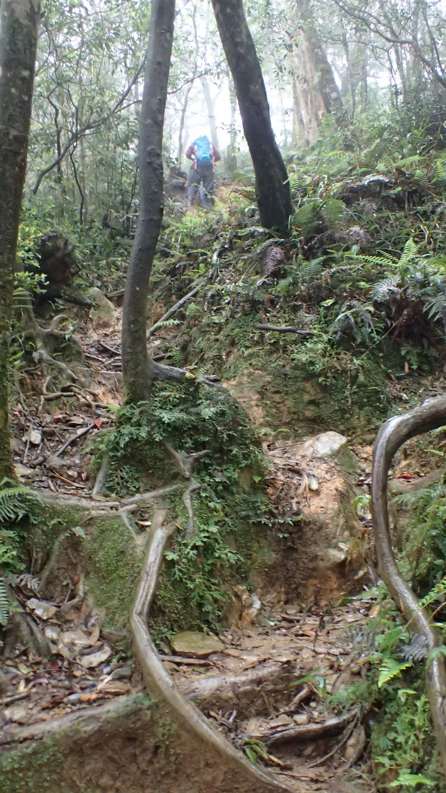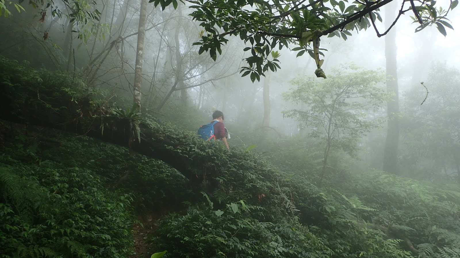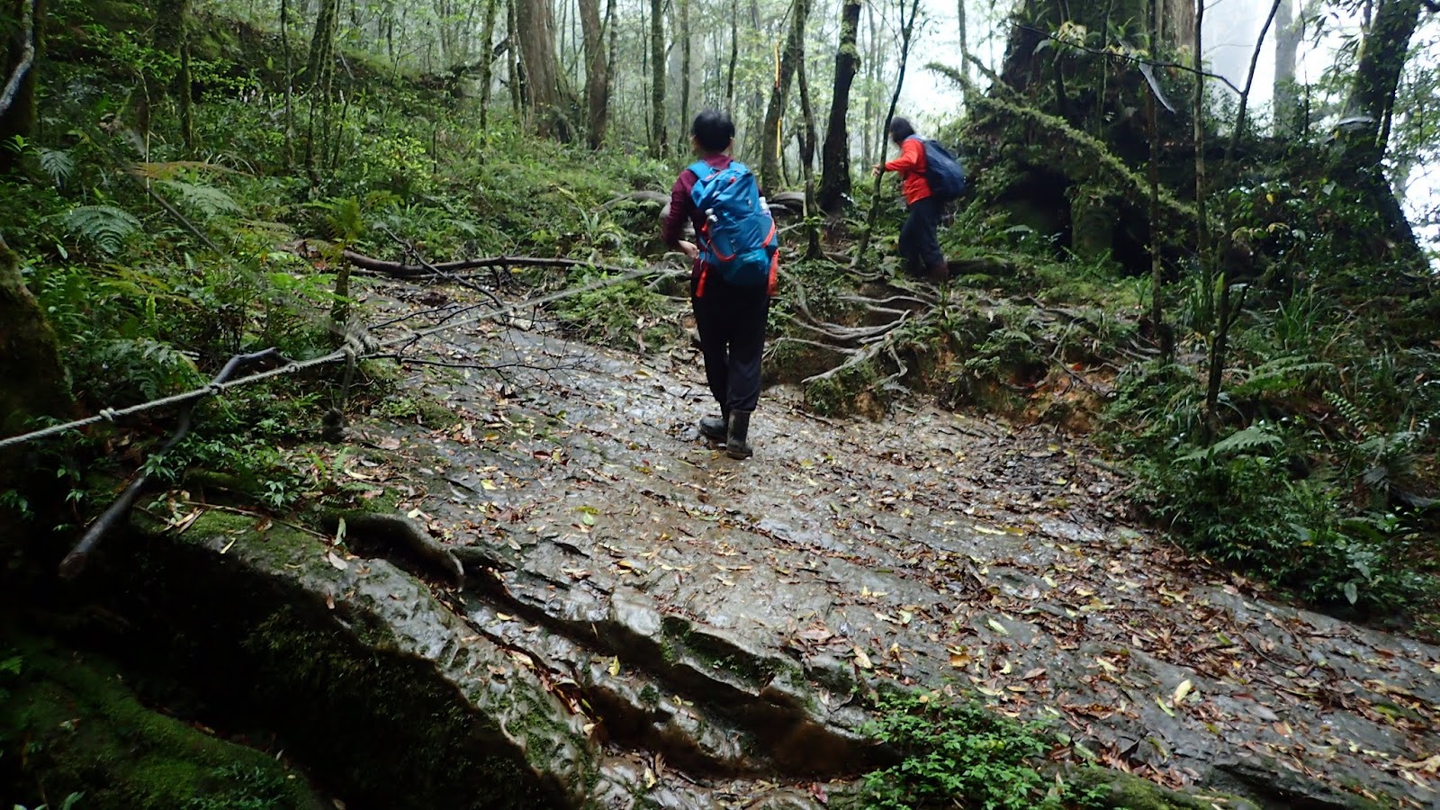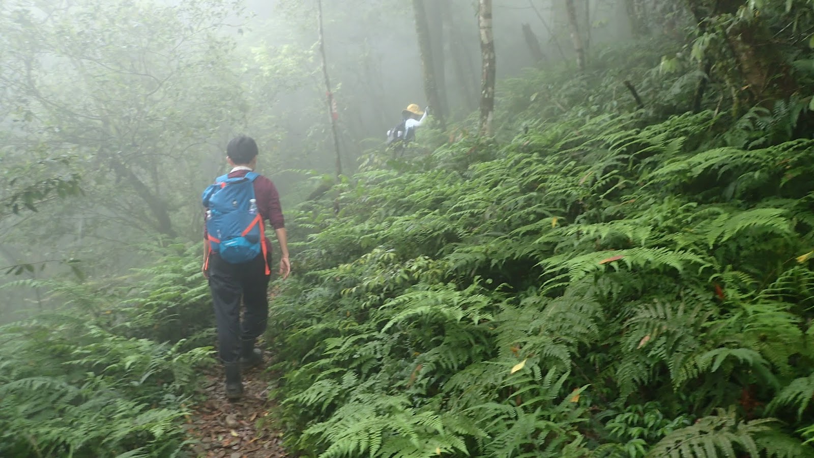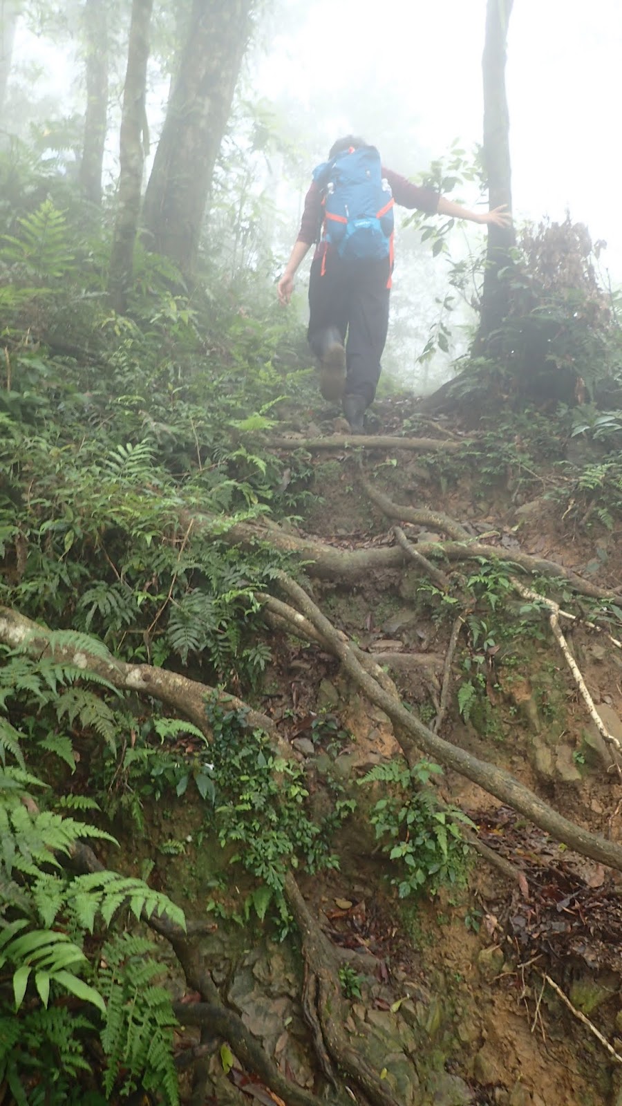 開始時亦步亦趨跟著前面的腳步專注的走, 整片山林一片霧茫茫, 陰陰涼爽的天氣很舒服