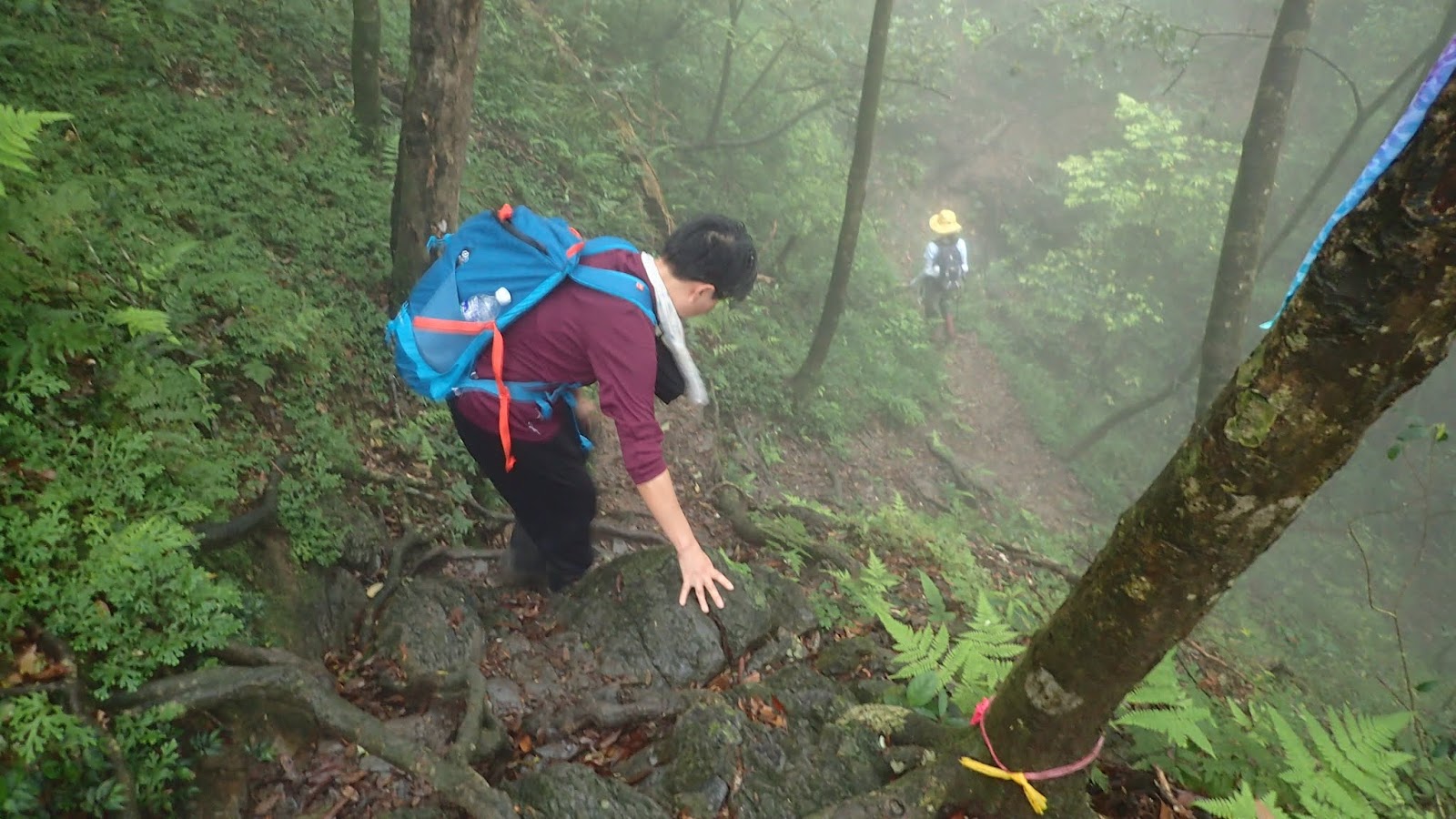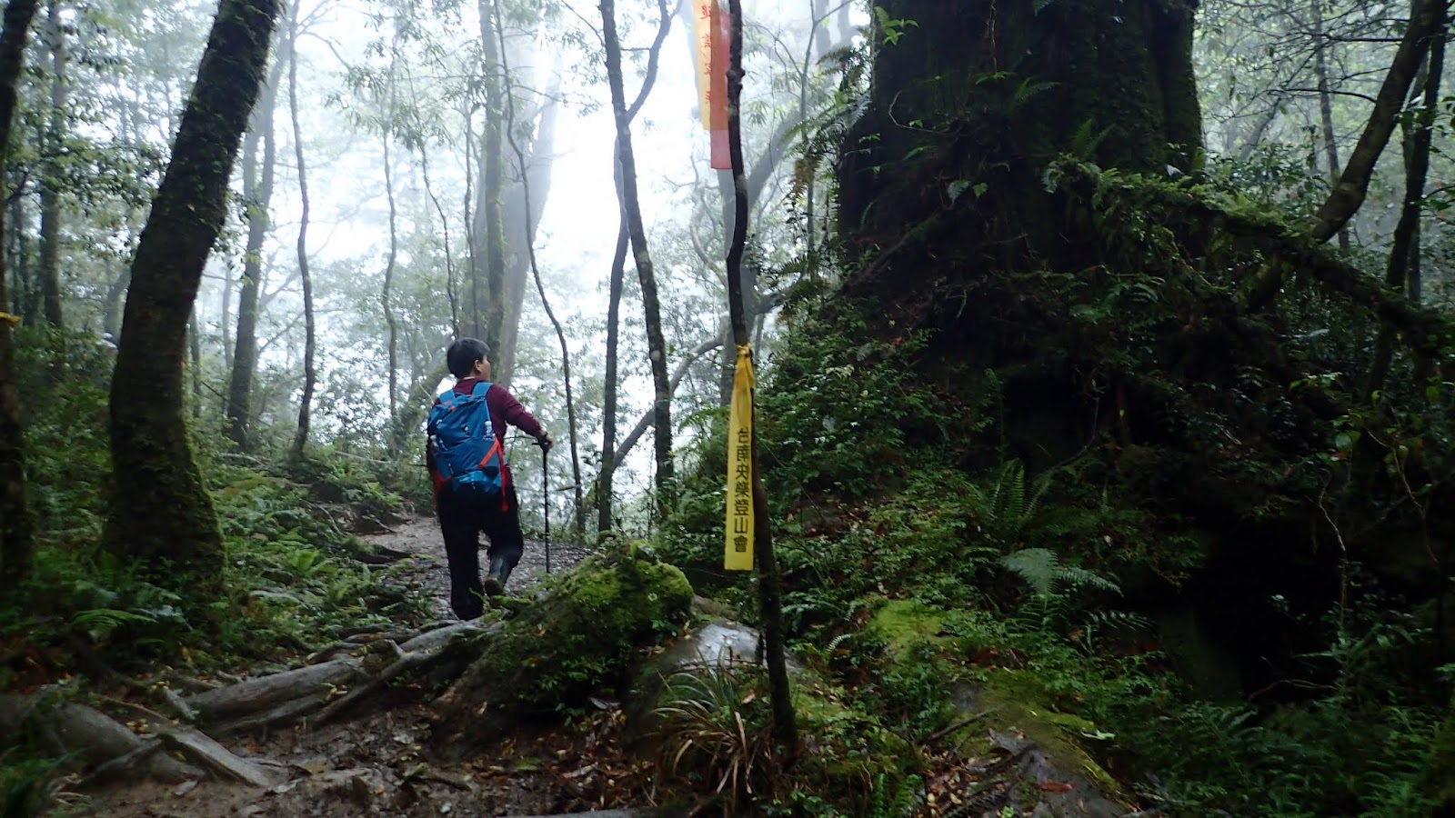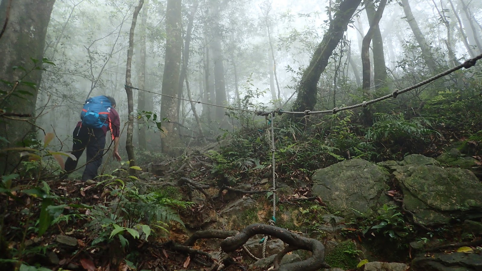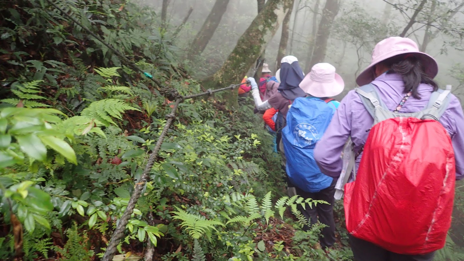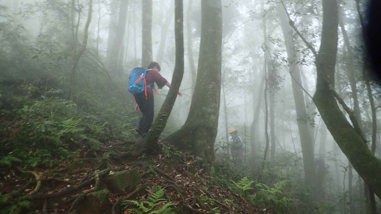 開始時亦步亦趨跟著前面的腳步專注的走, 整片山林一片霧茫茫, 陰陰涼爽的天氣很舒服