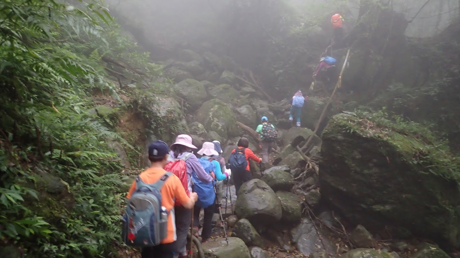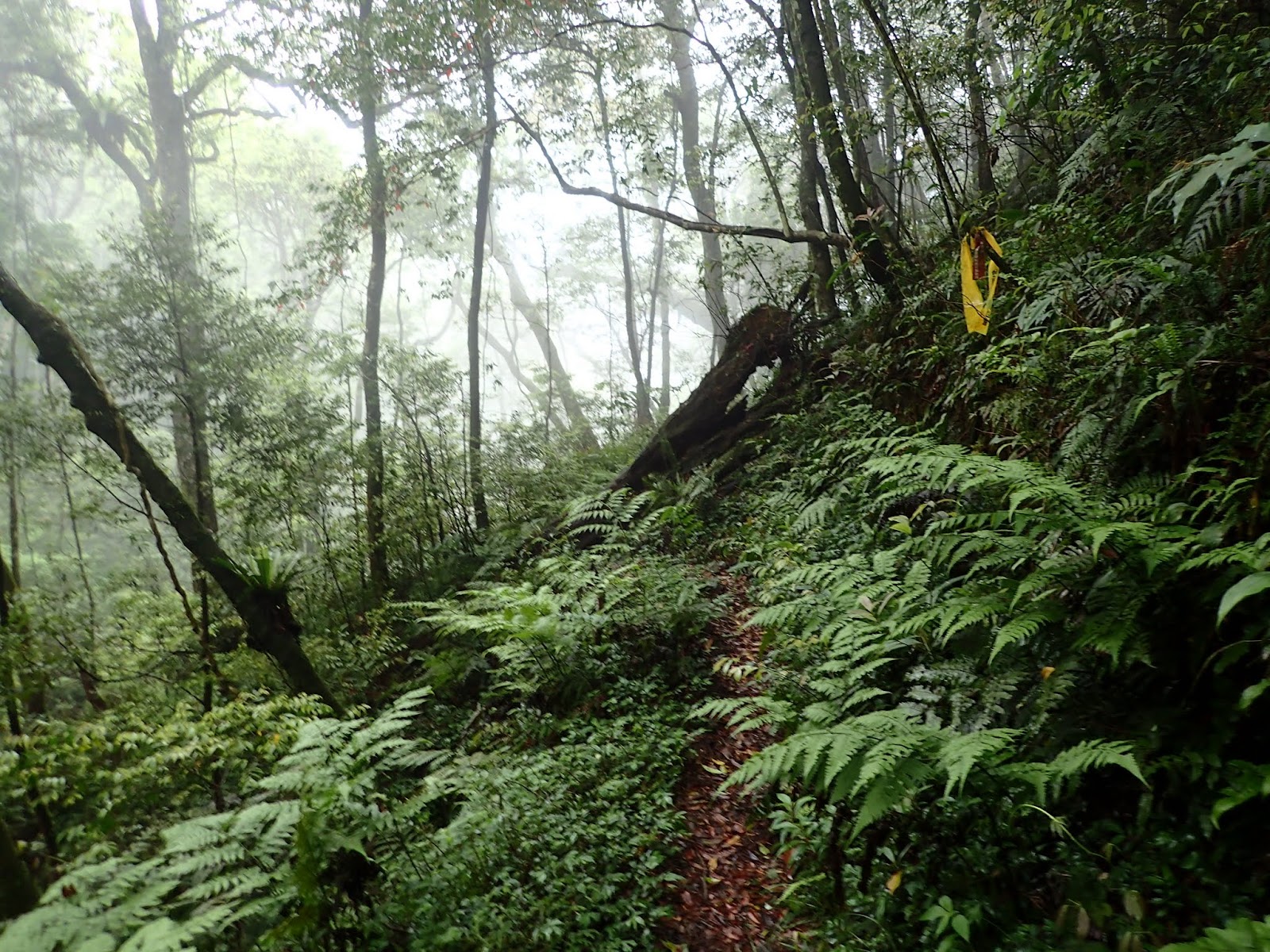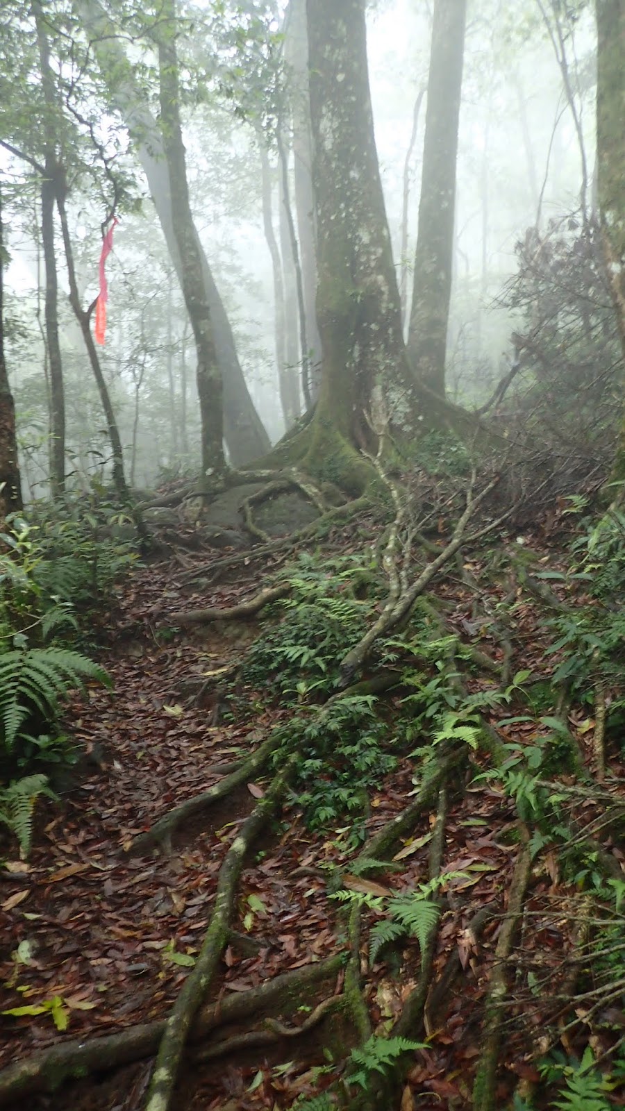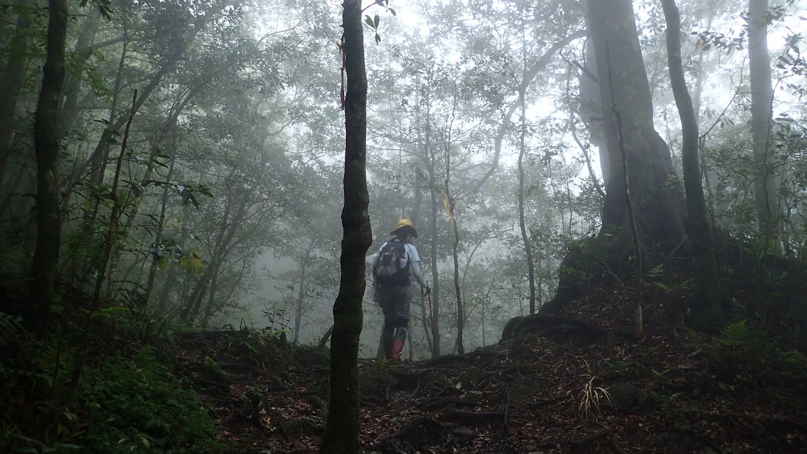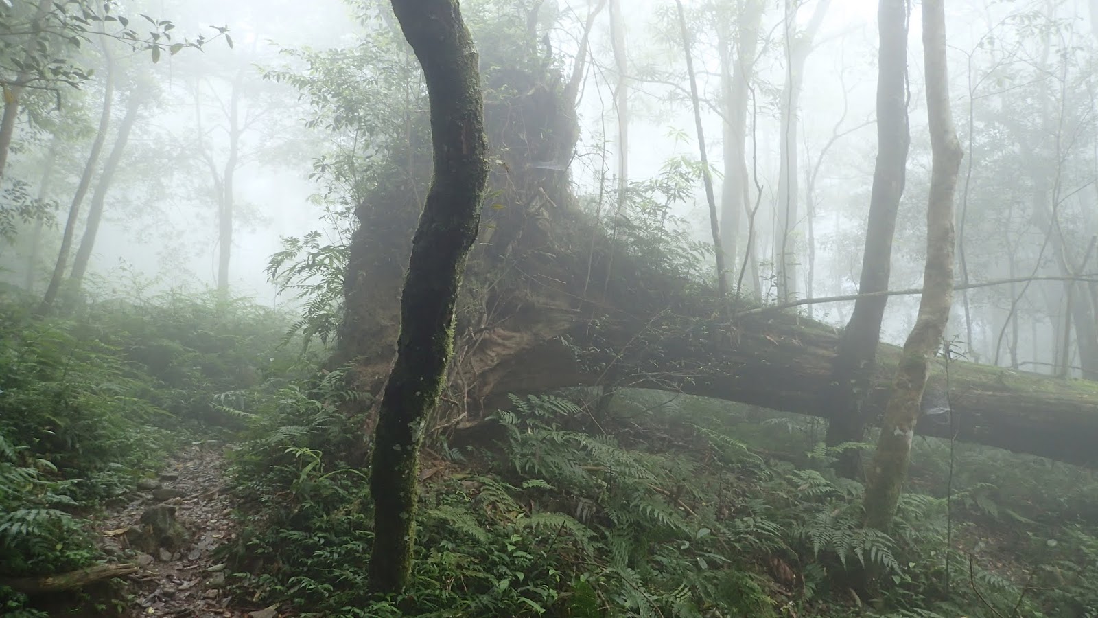 開始時亦步亦趨跟著前面的腳步專注的走, 整片山林一片霧茫茫, 陰陰涼爽的天氣很舒服