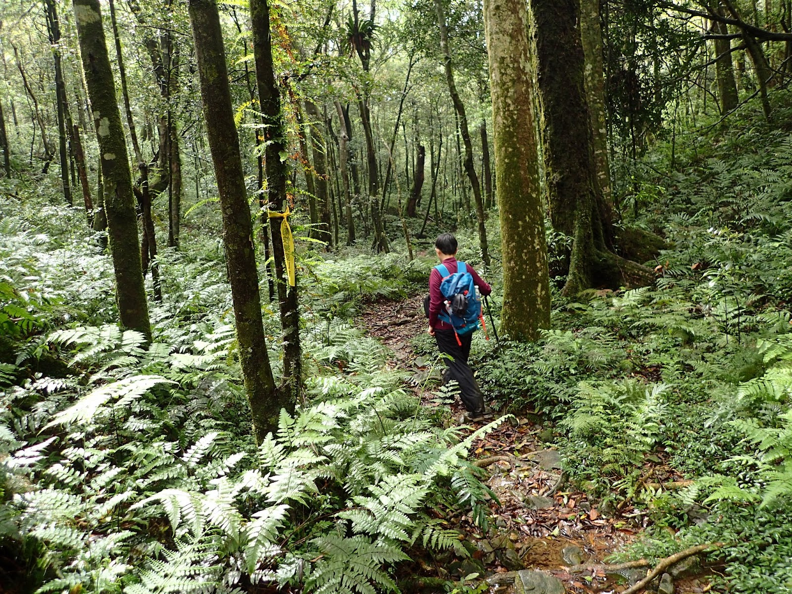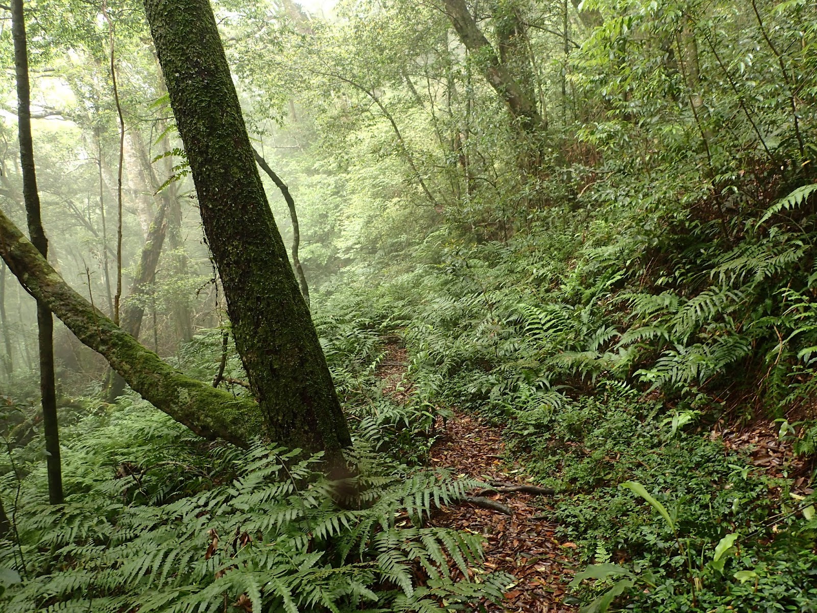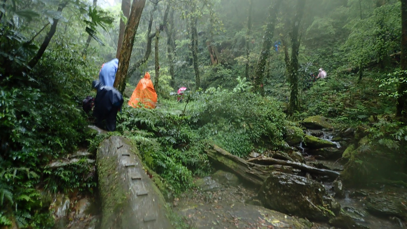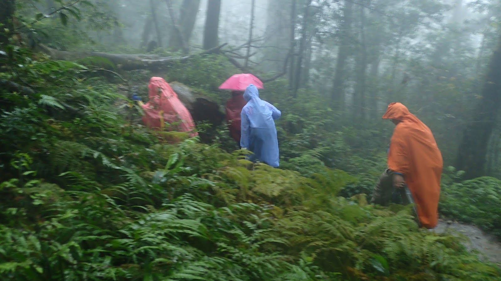 開始時亦步亦趨跟著前面的腳步專注的走, 整片山林一片霧茫茫, 陰陰涼爽的天氣很舒服