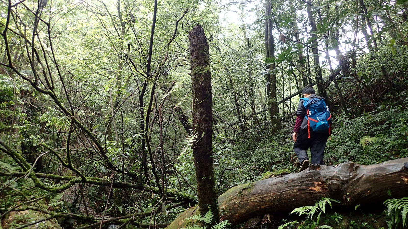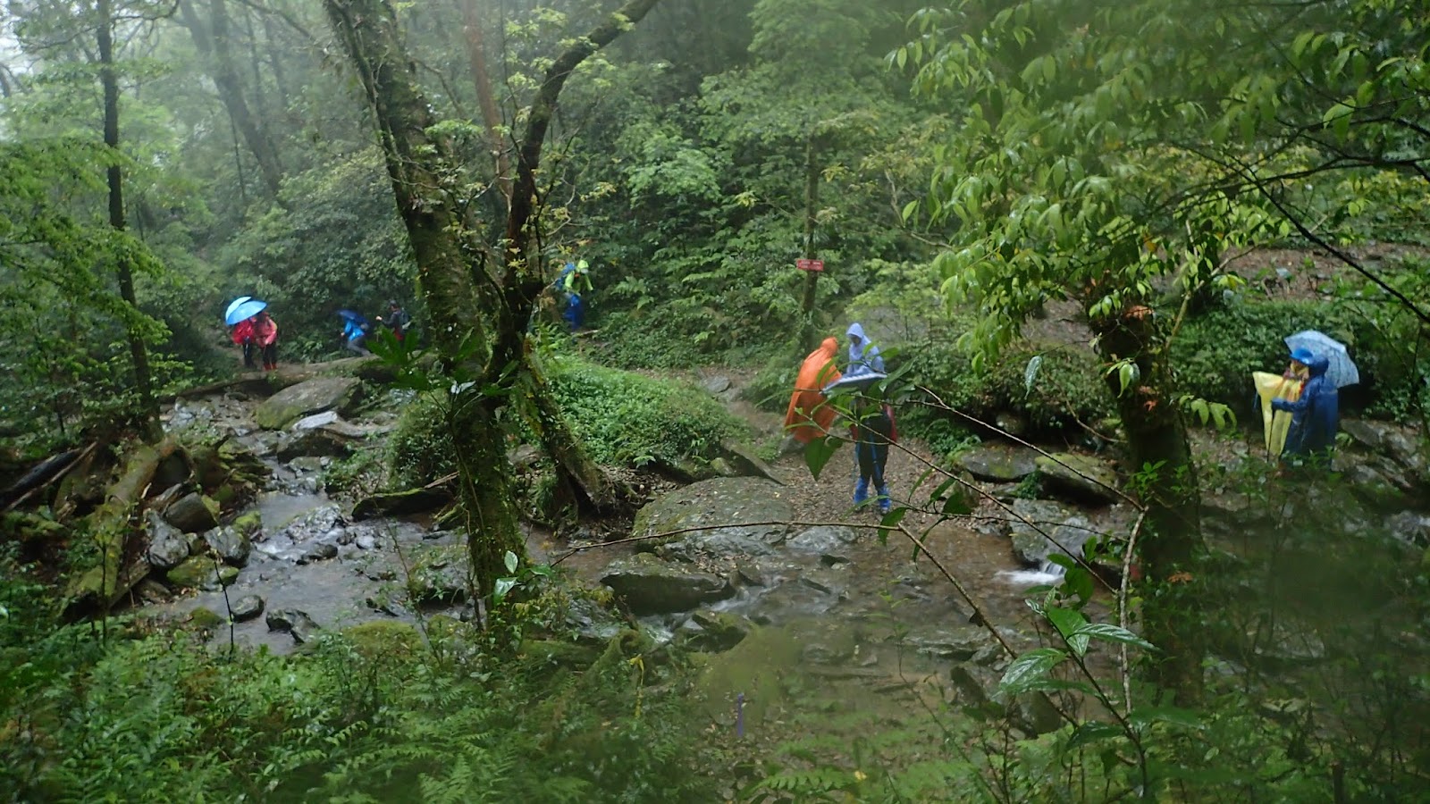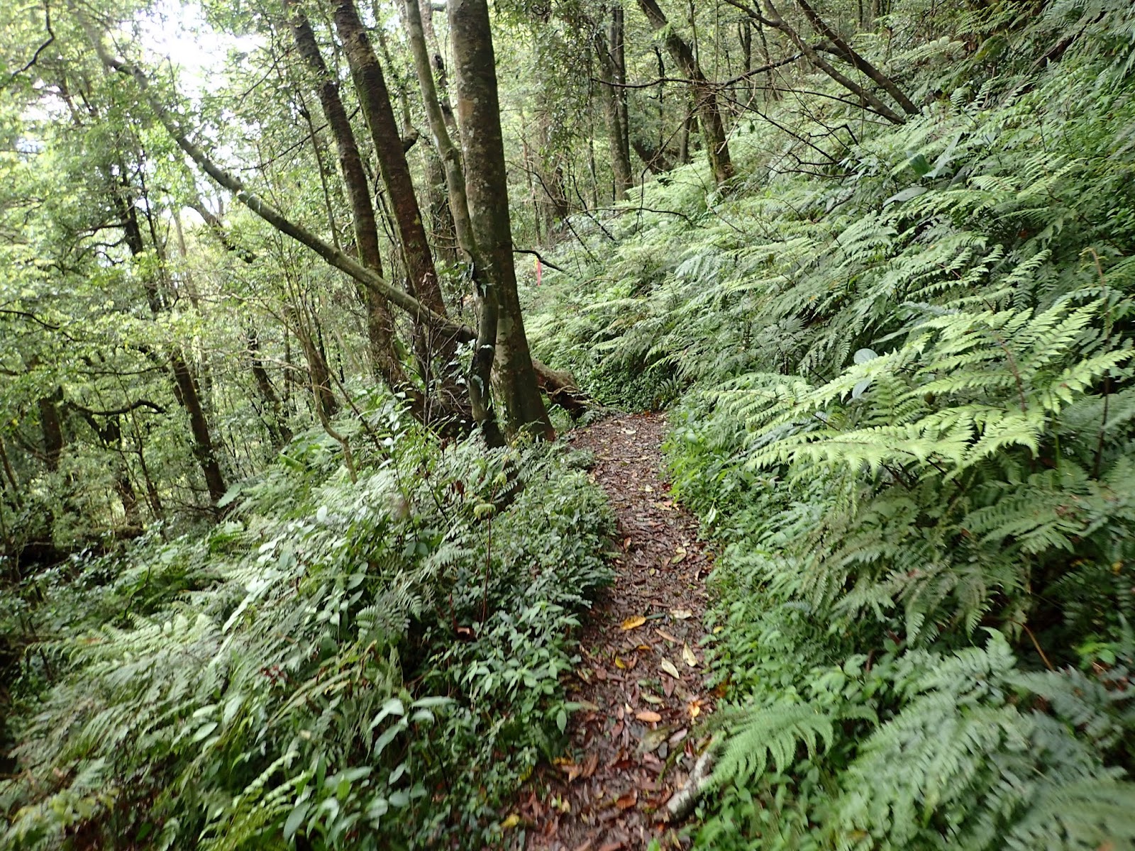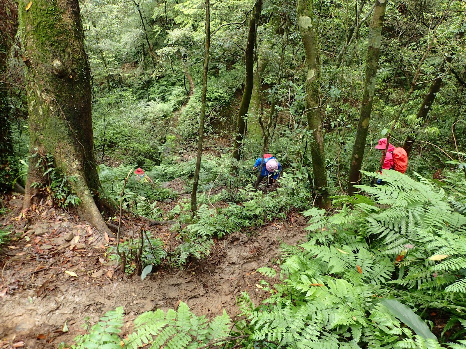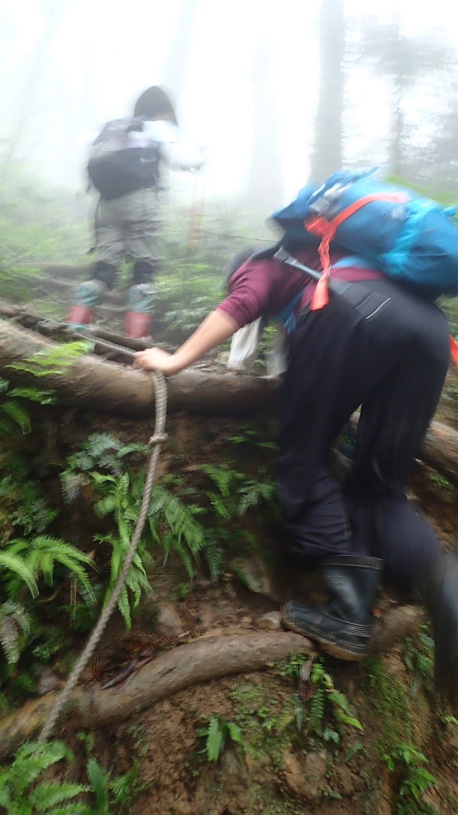 開始時亦步亦趨跟著前面的腳步專注的走, 整片山林一片霧茫茫, 陰陰涼爽的天氣很舒服