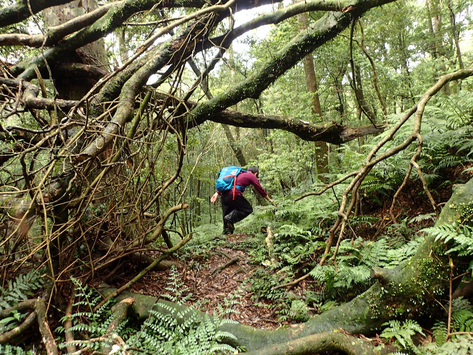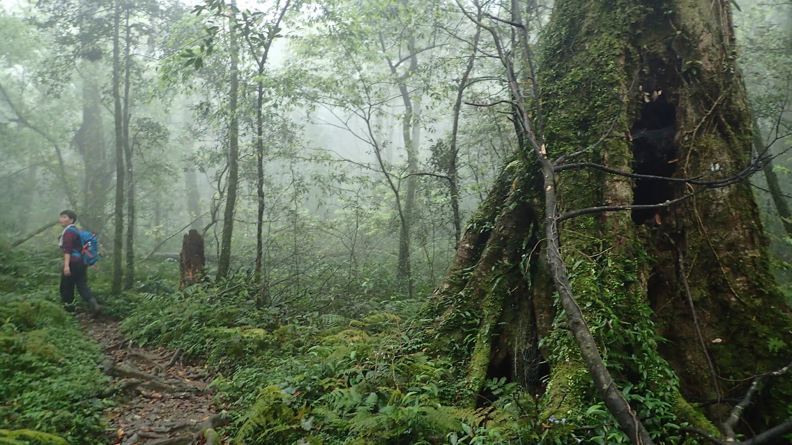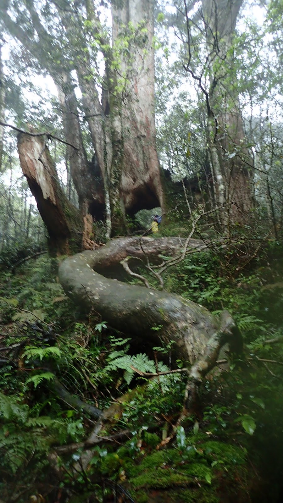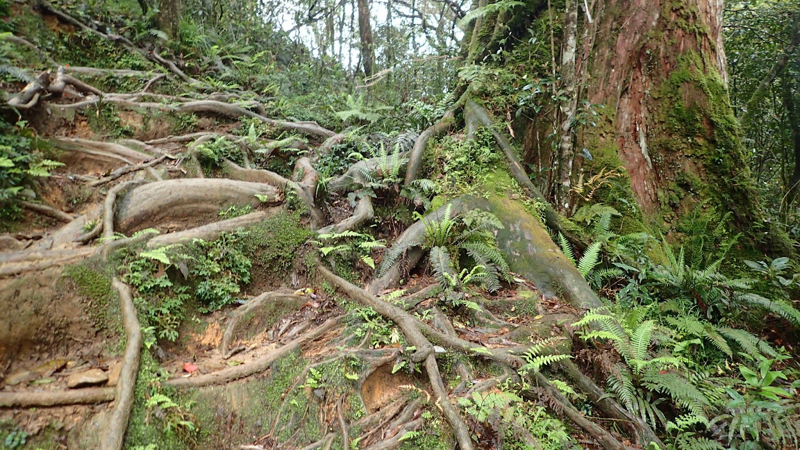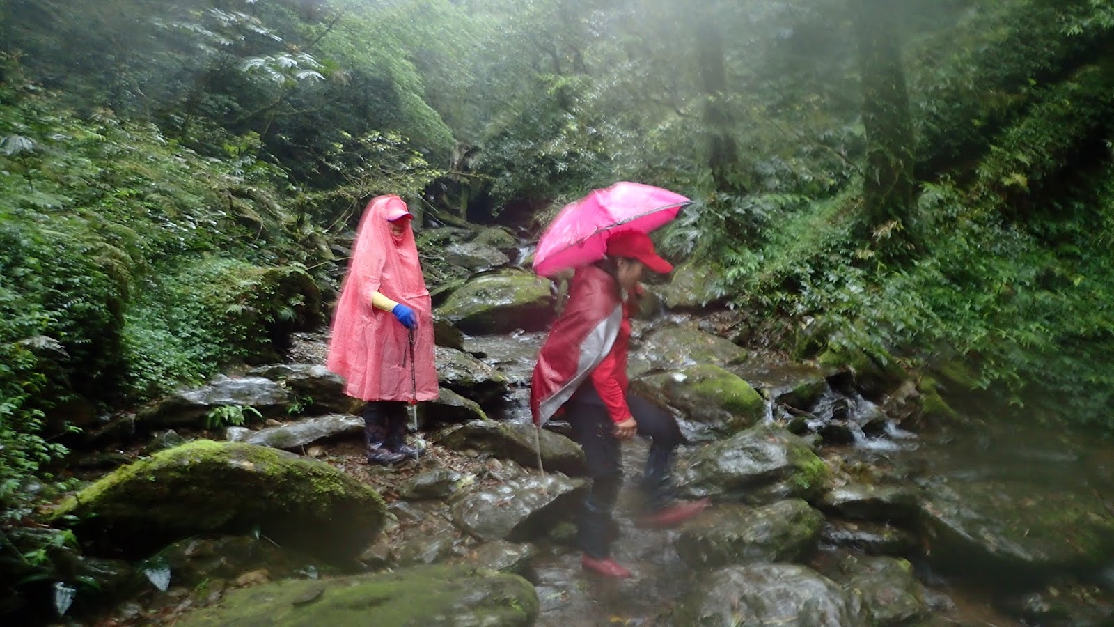 開始時亦步亦趨跟著前面的腳步專注的走, 整片山林一片霧茫茫, 陰陰涼爽的天氣很舒服