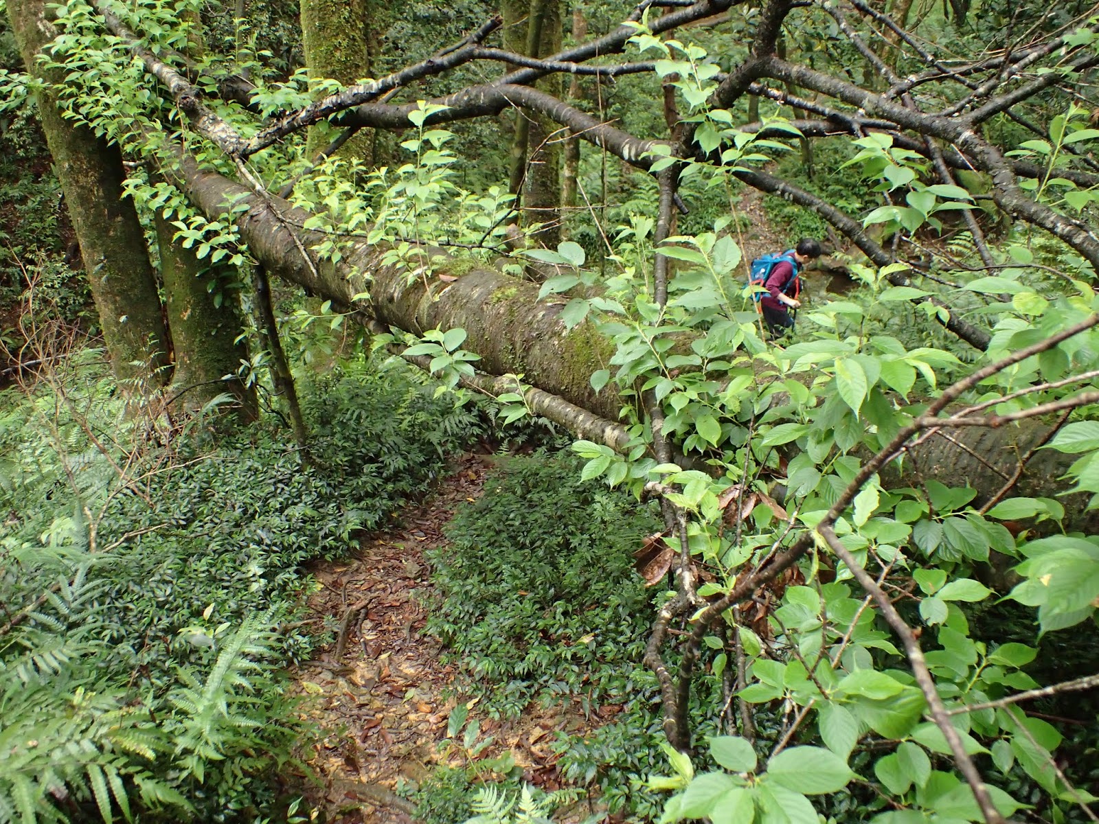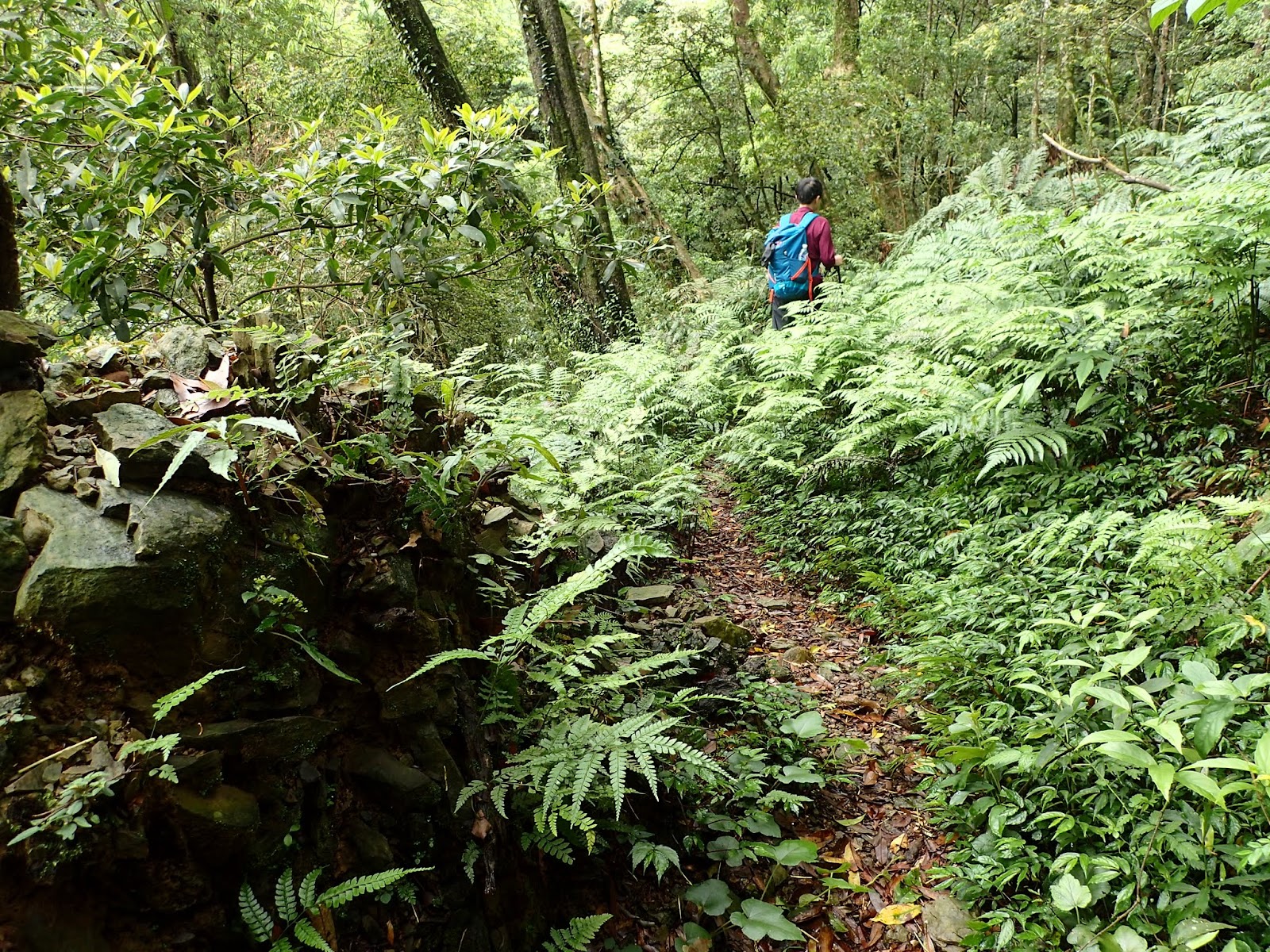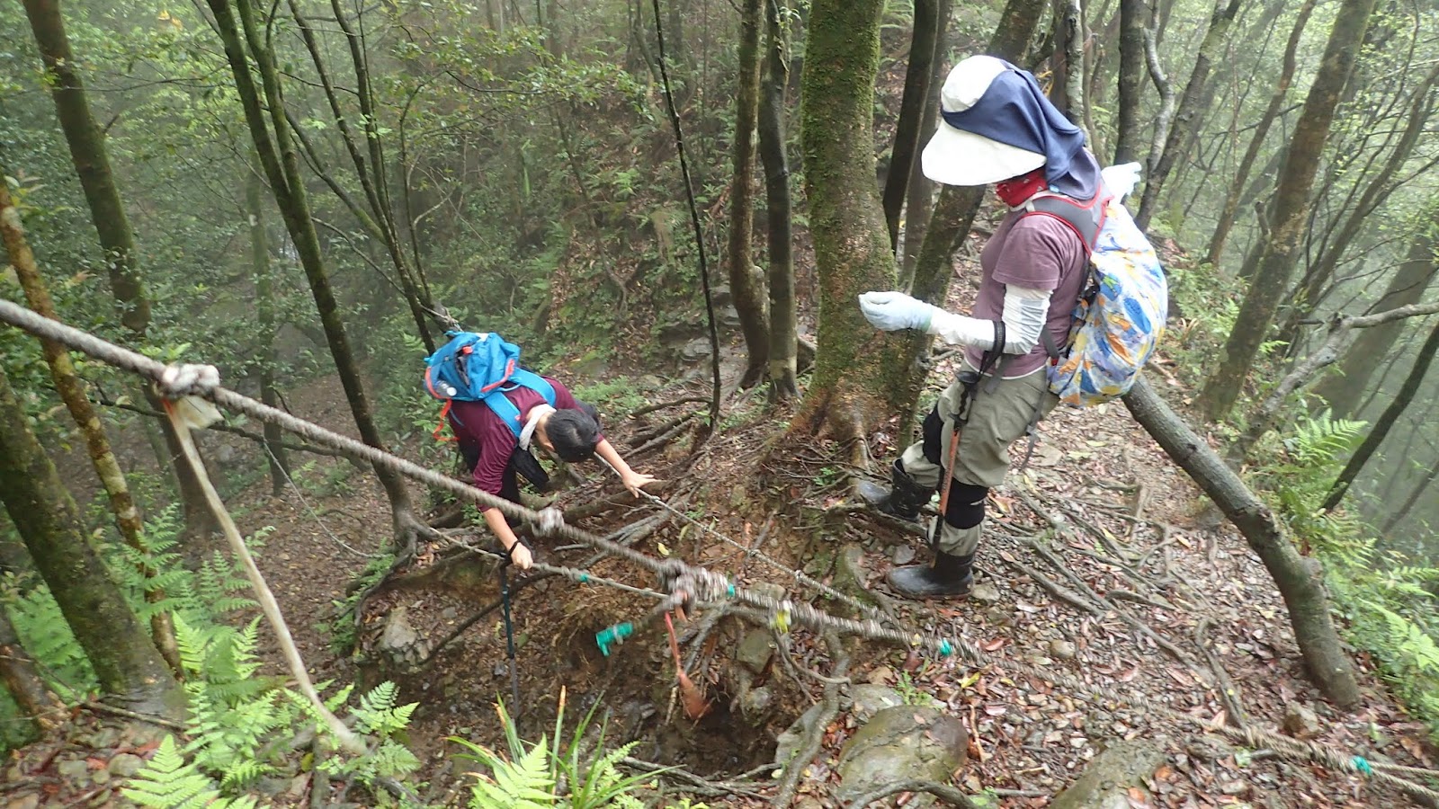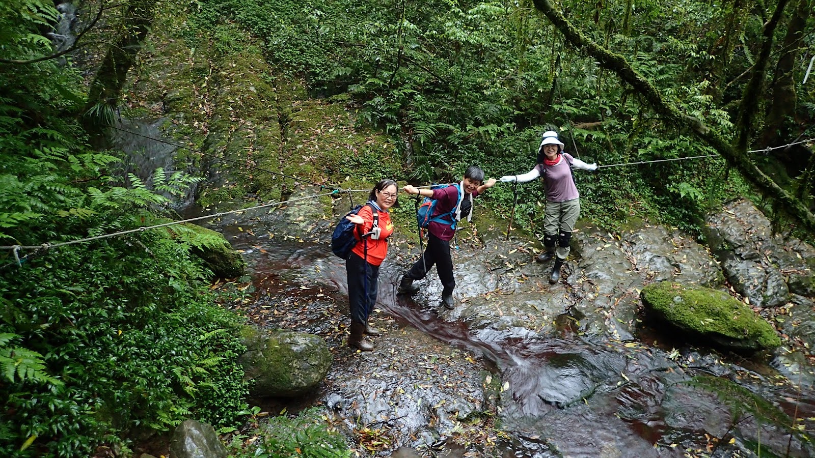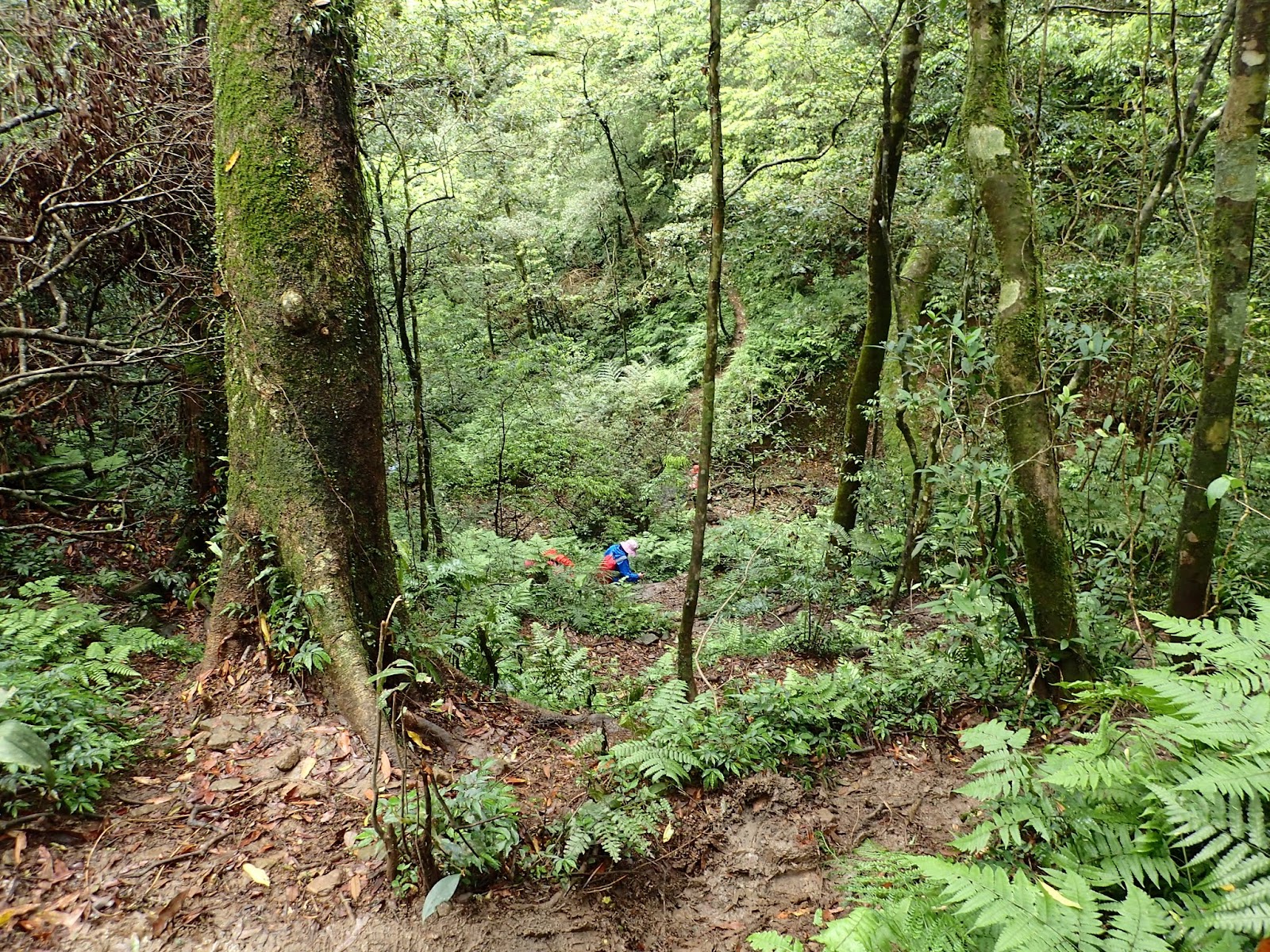 開始時亦步亦趨跟著前面的腳步專注的走, 整片山林一片霧茫茫, 陰陰涼爽的天氣很舒服