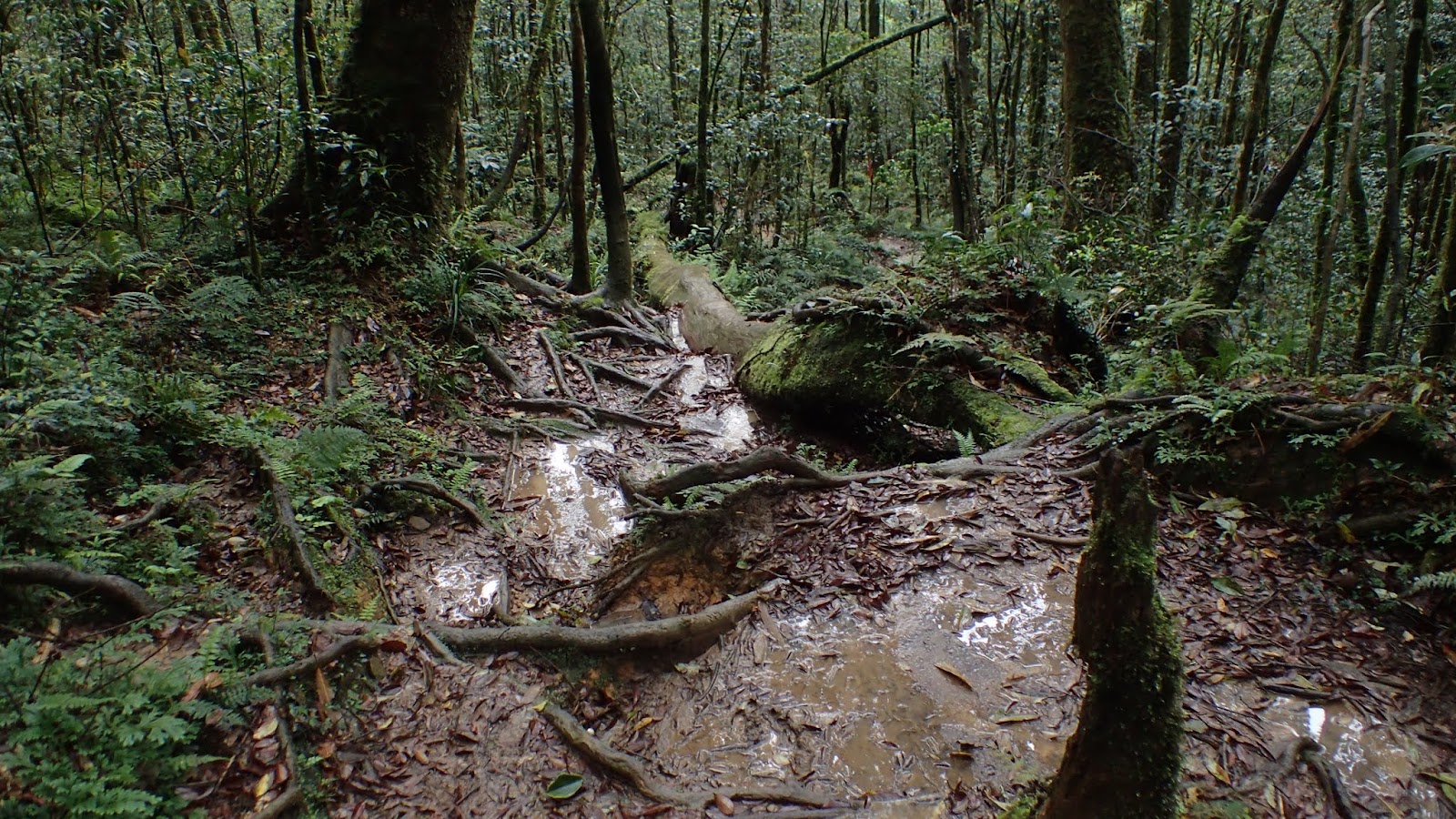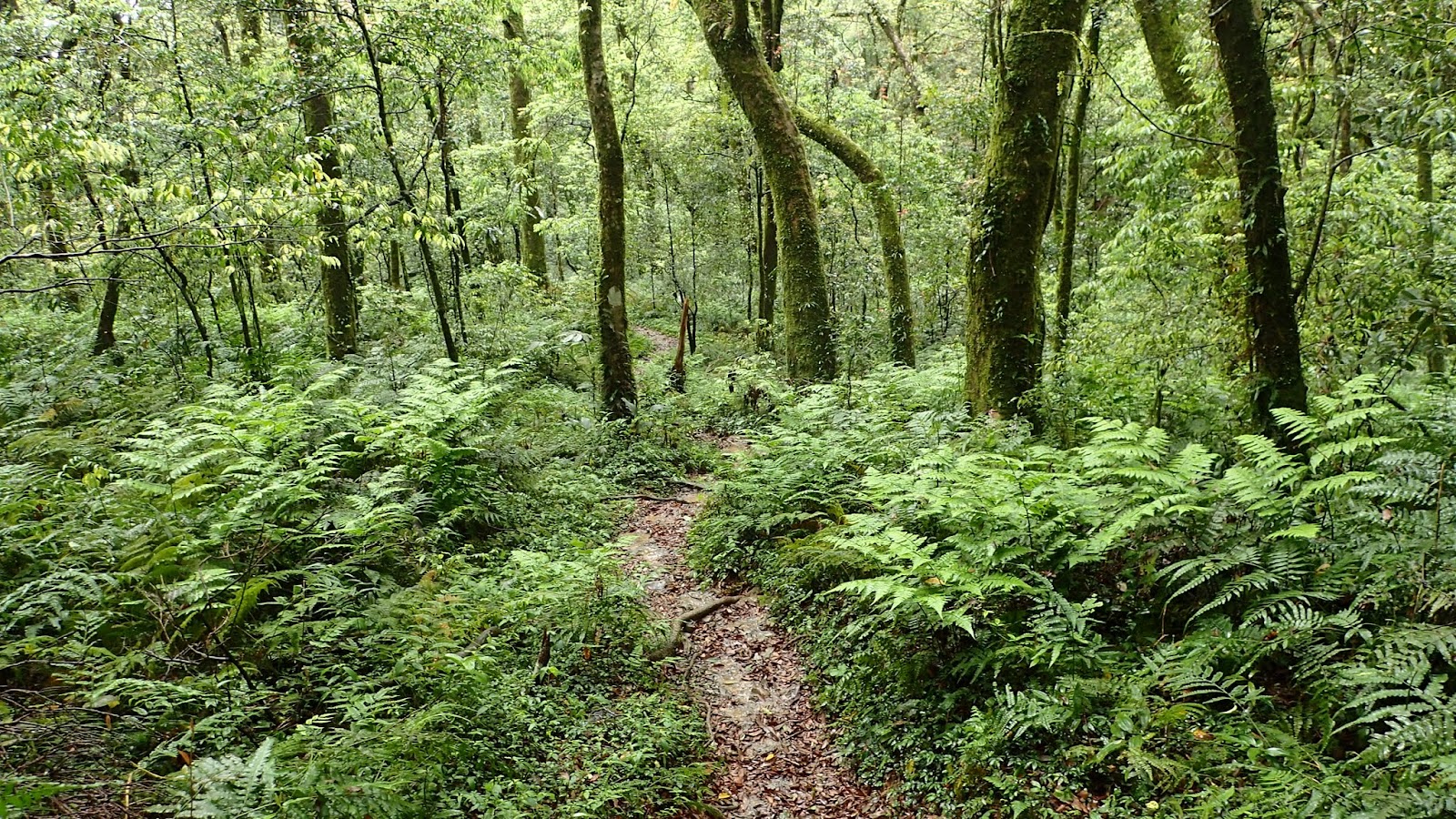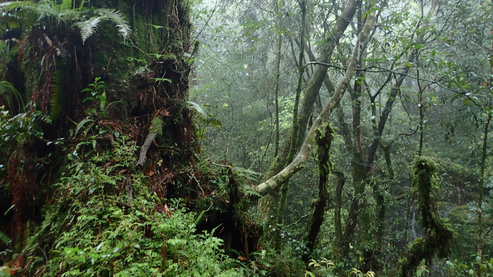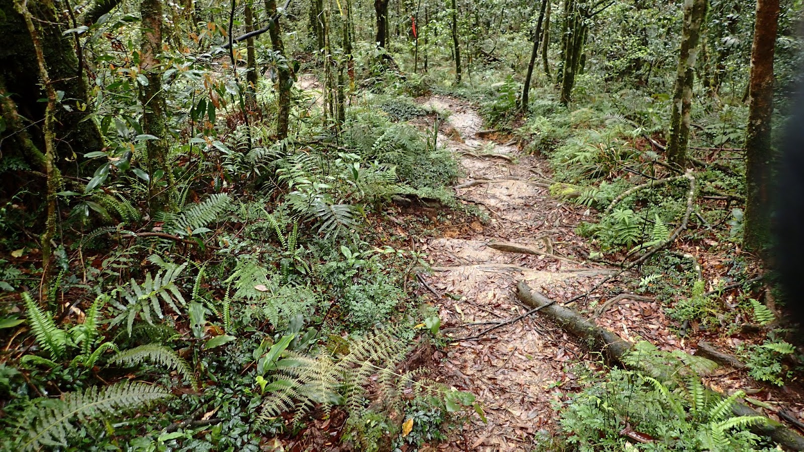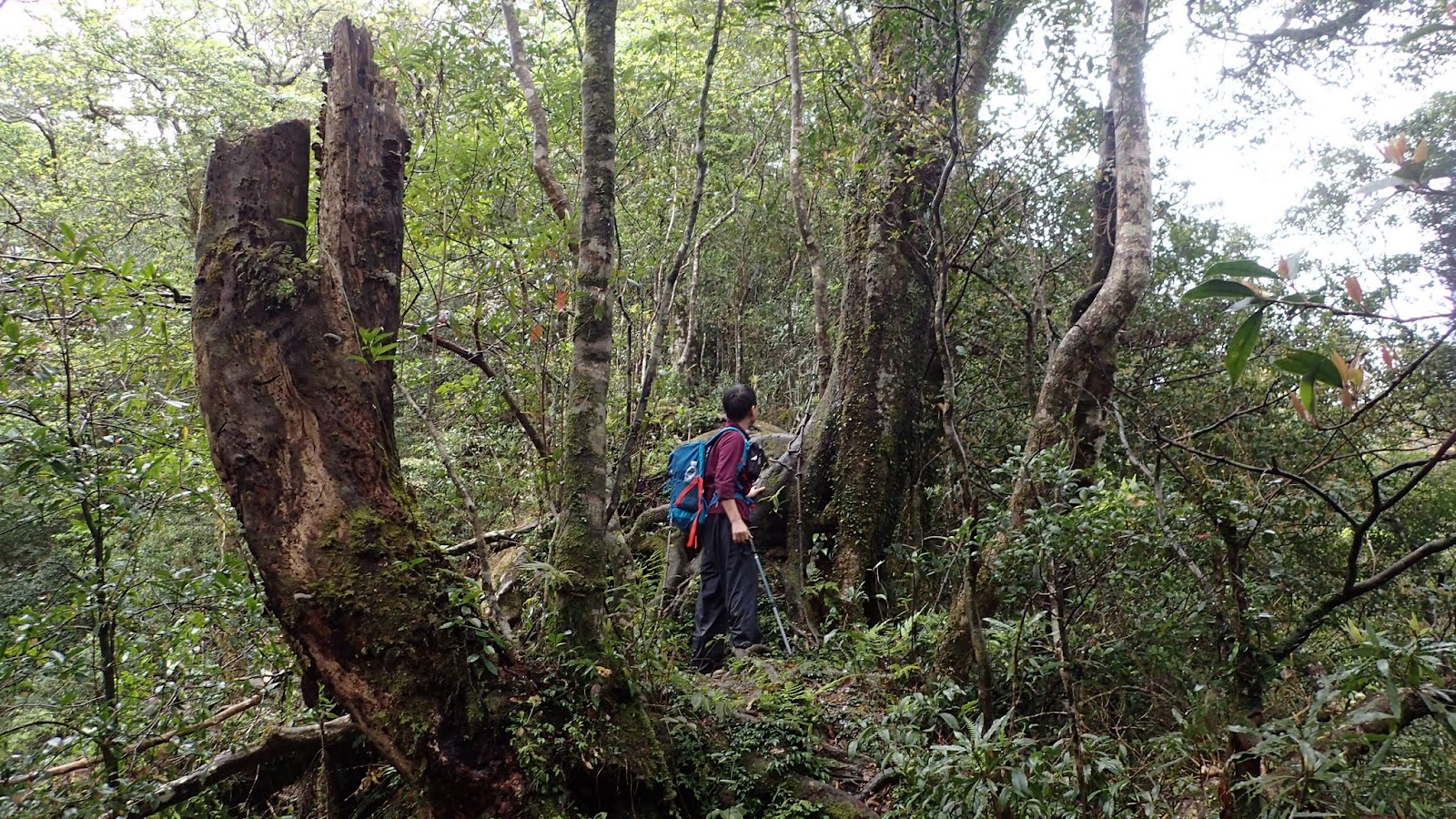 開始時亦步亦趨跟著前面的腳步專注的走, 整片山林一片霧茫茫, 陰陰涼爽的天氣很舒服