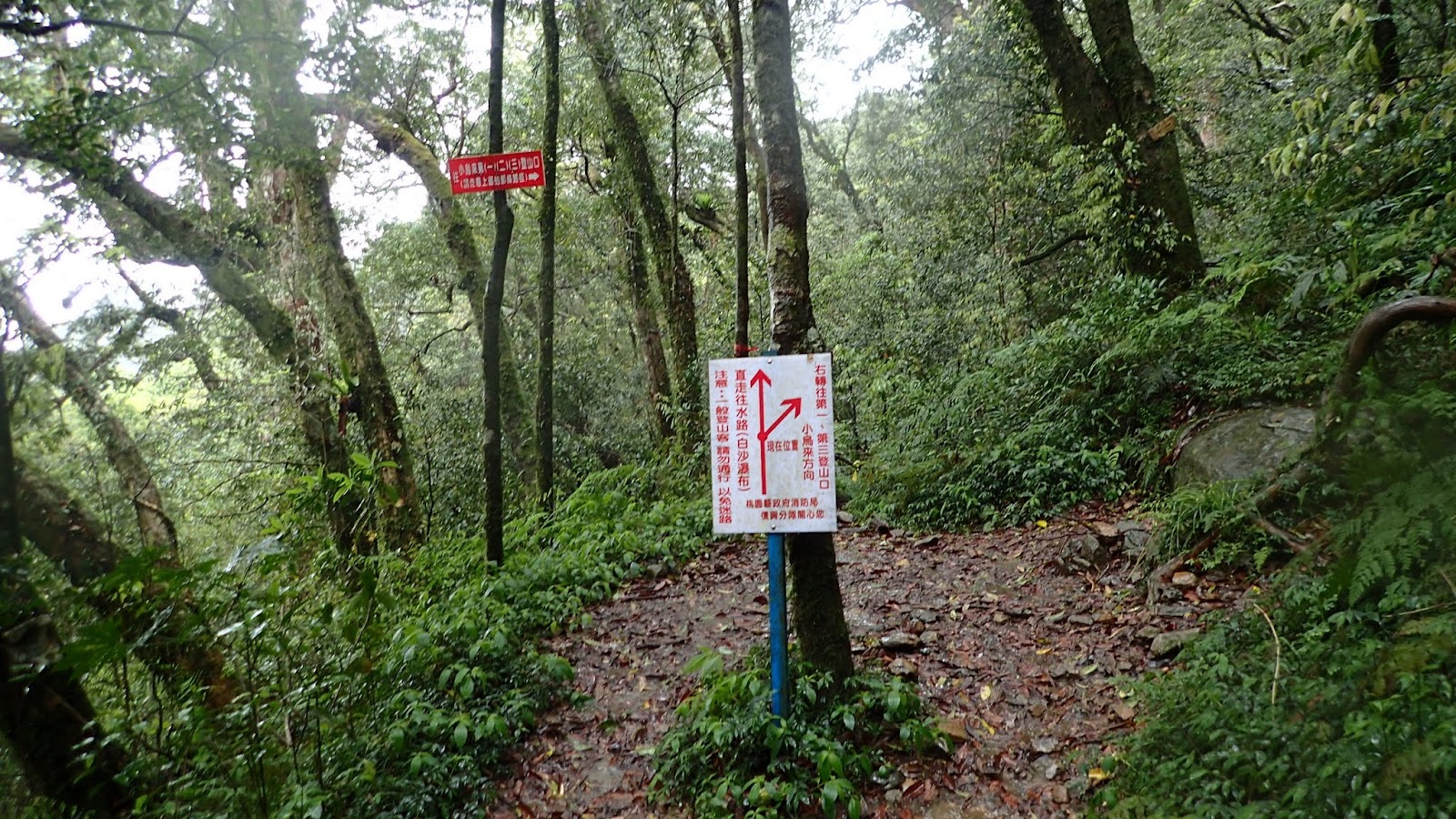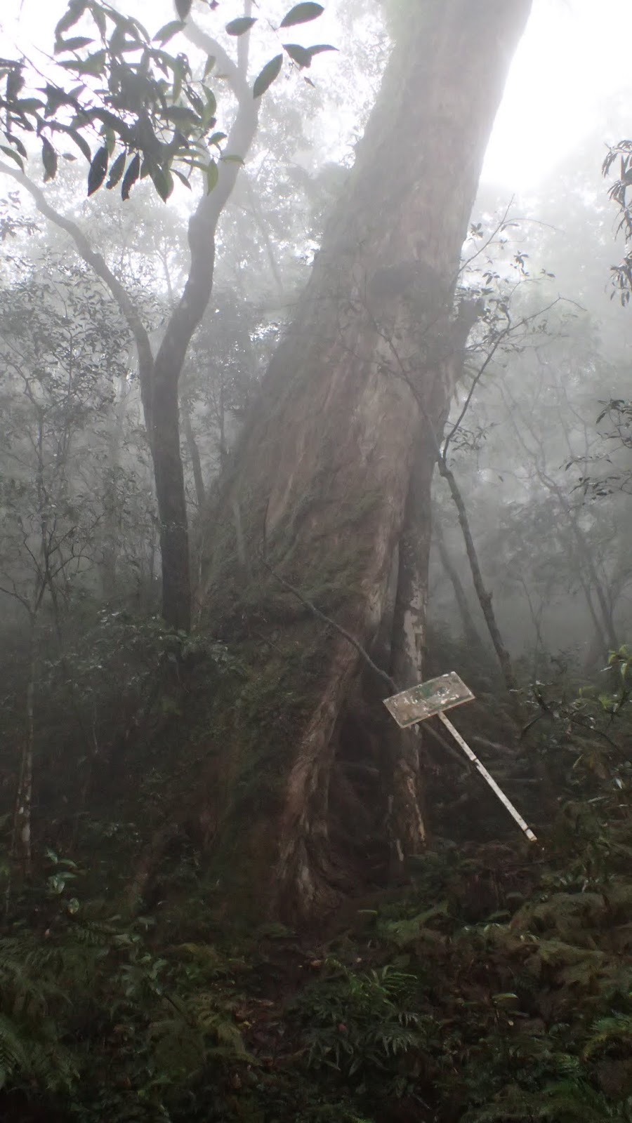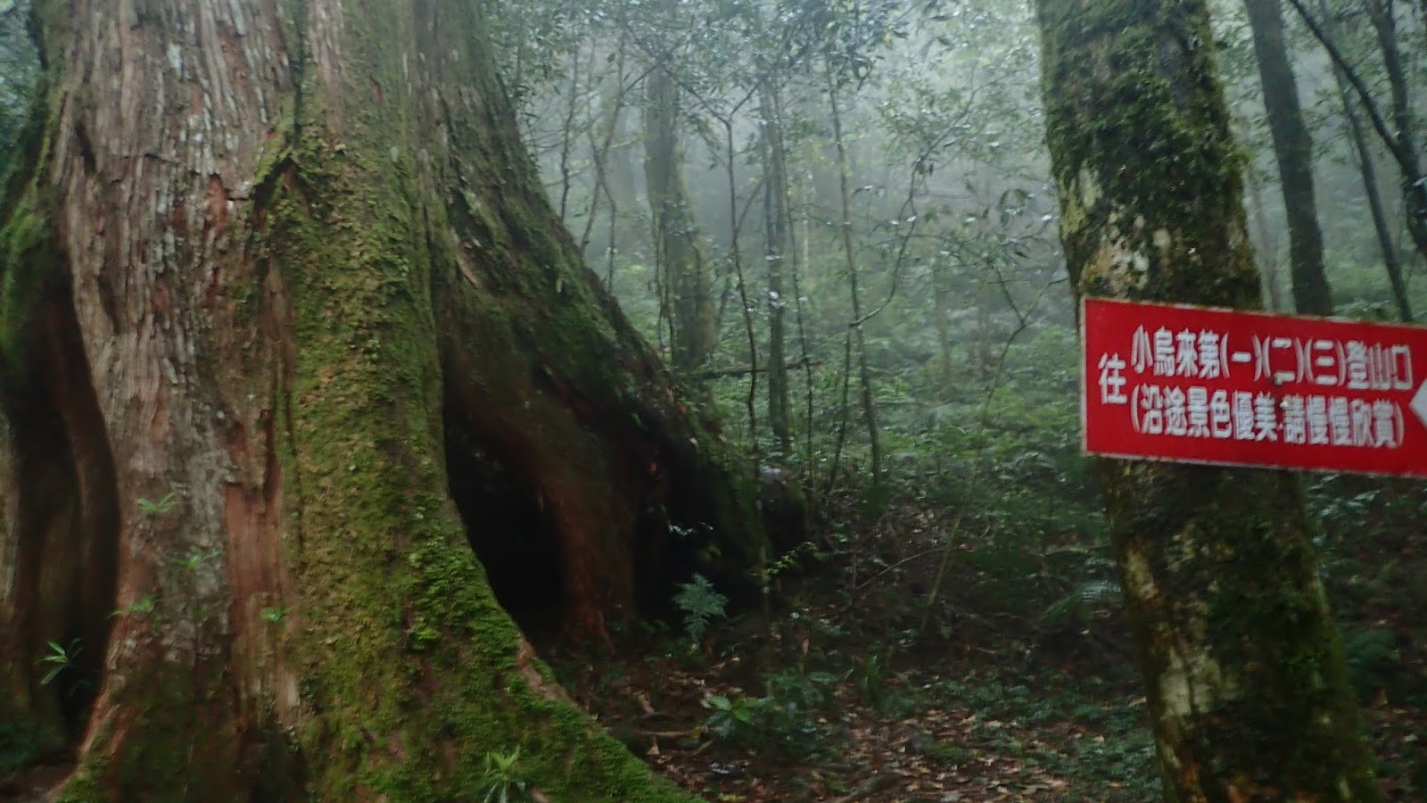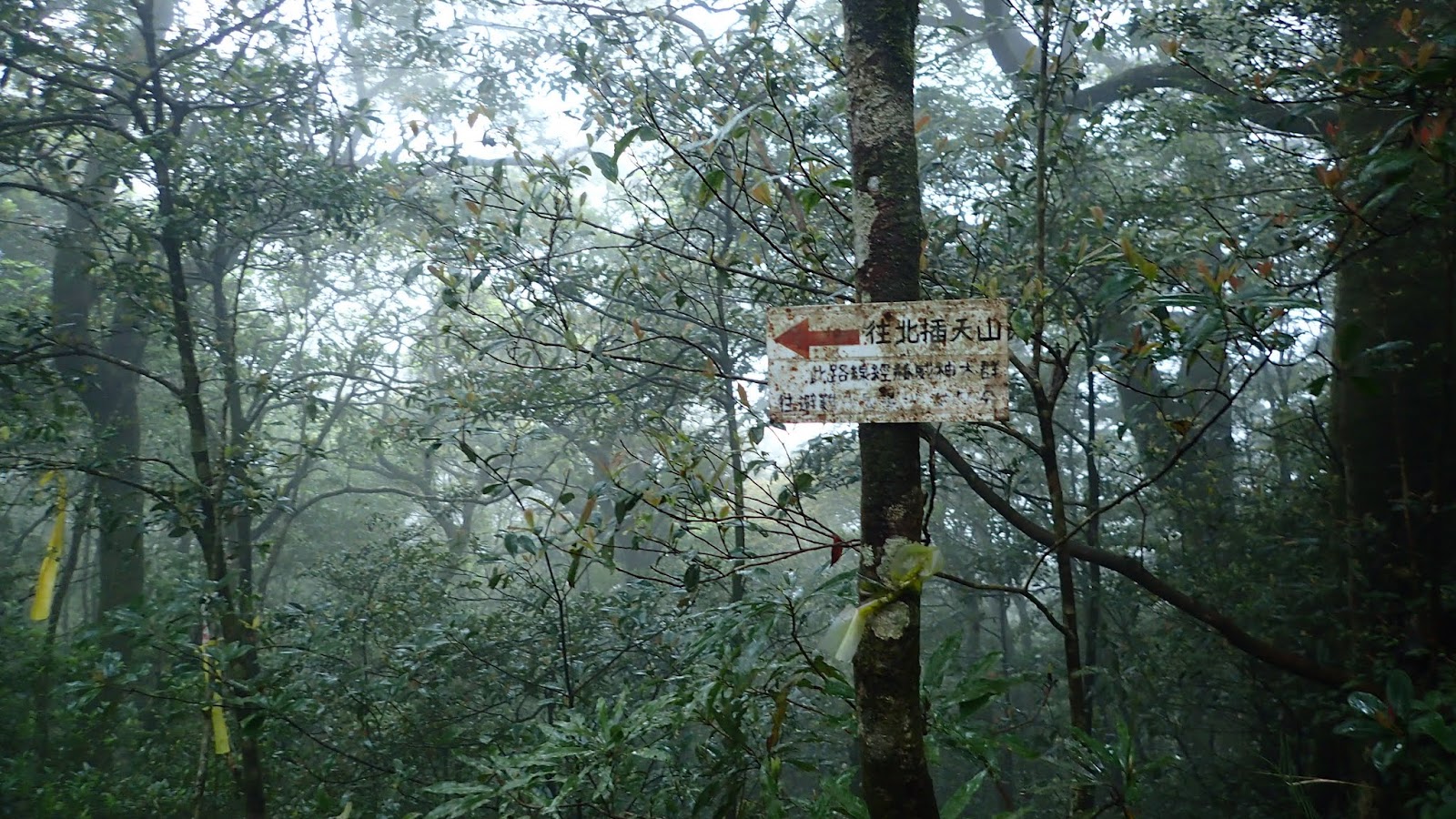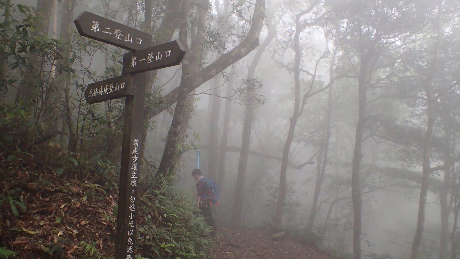 9:55看見往第一, 第二登山口及往赫威神木路標, 當然是往神木方向前進, 此時霧氣更濃, 視線有點模糊