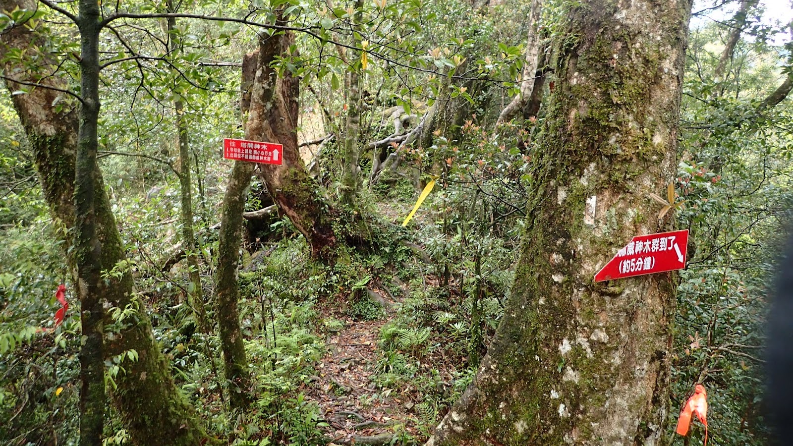 走回第一, 第二登山口及往赫威神木路標岔路口, 見到幾位身手矯健的登山者, 幾乎是用跑的下山