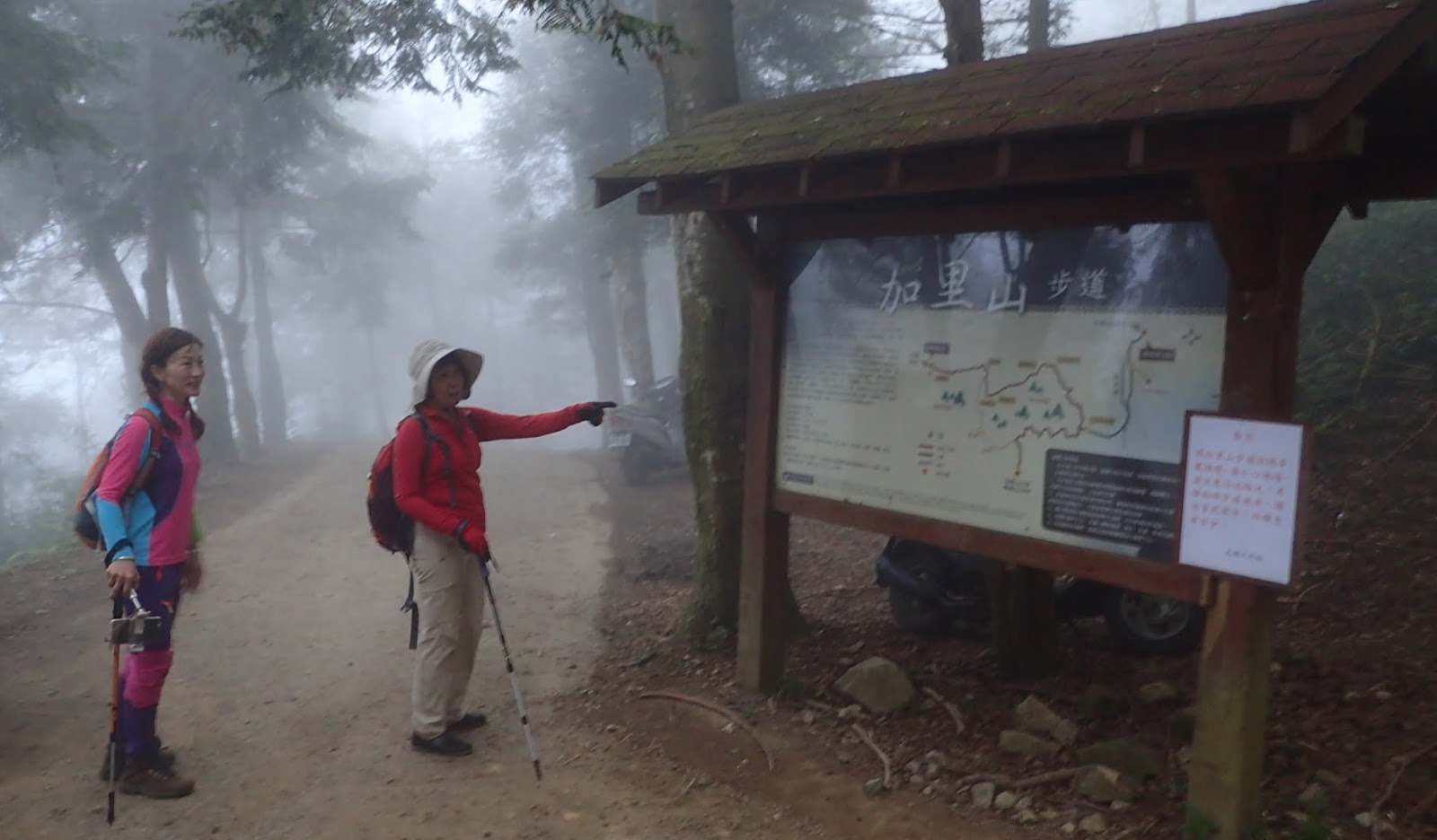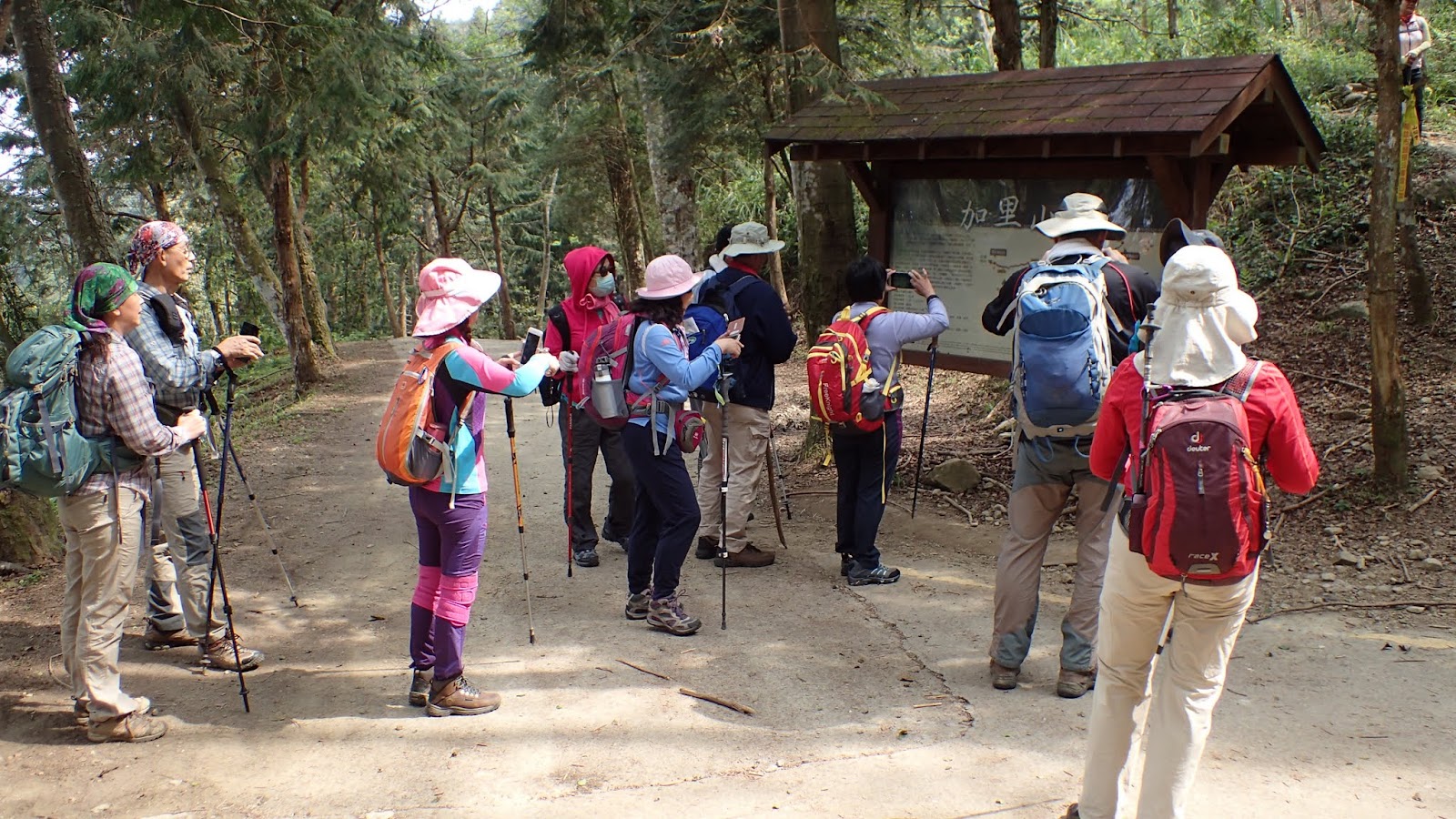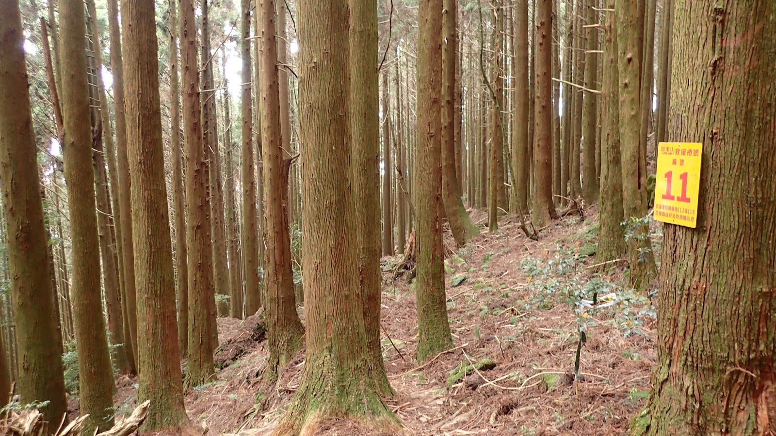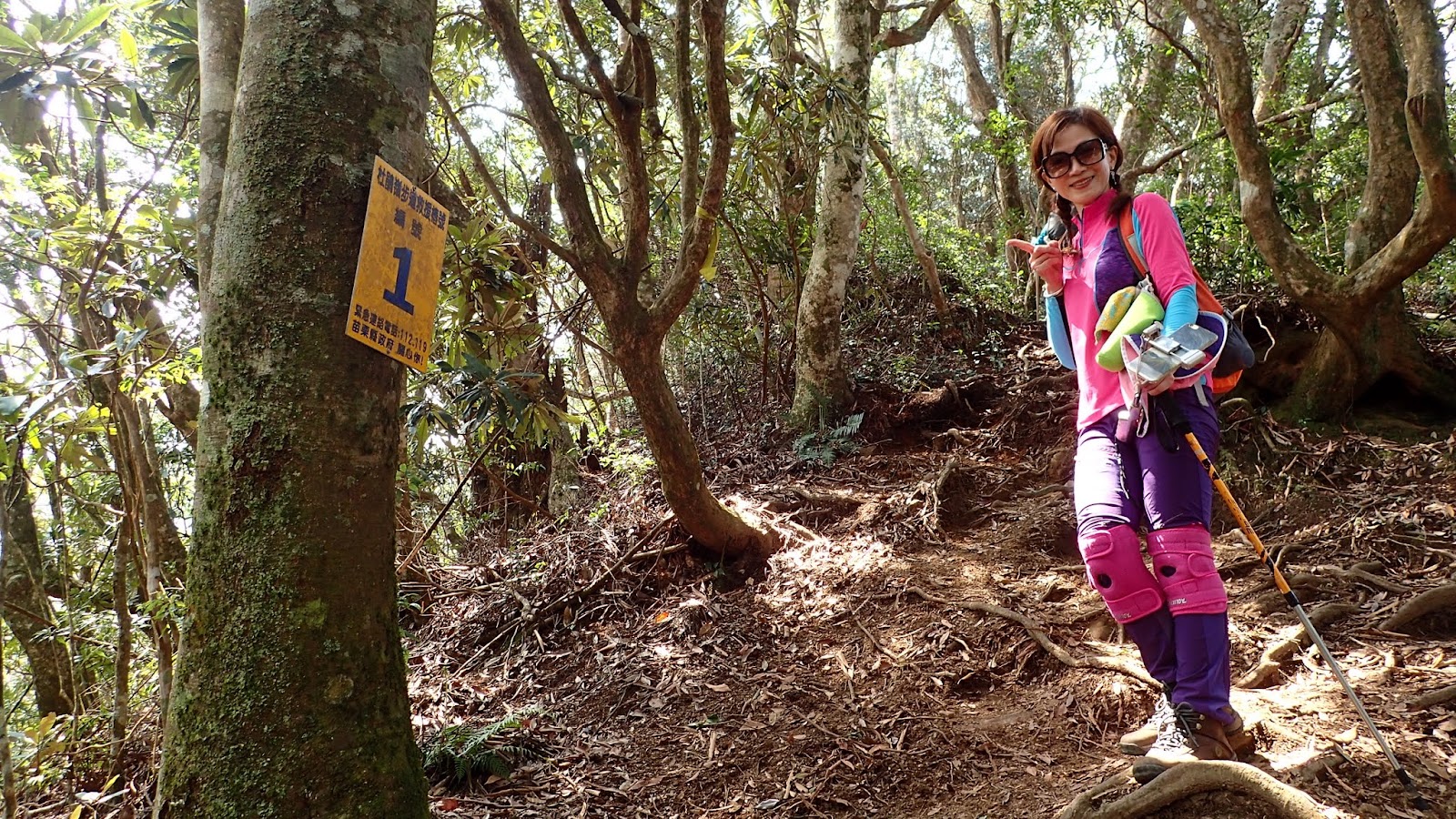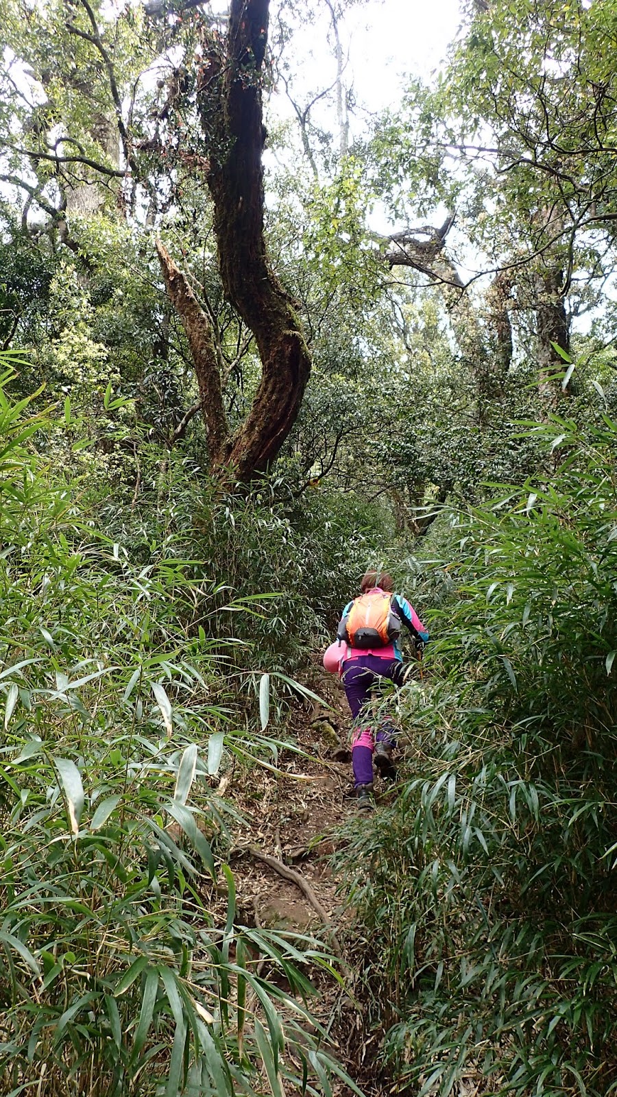 一路斜坡往上, 山路寬敞好走, 但因九段有交待想上加里山要走快點不要只顧著拍照, 聽的我跟琴妹好緊張趕緊加快腳步, 回頭跟小潘說要走快點, 可是小潘一直沒跟上
