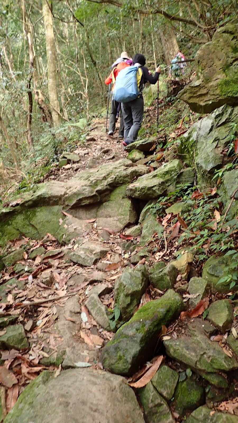 前頭同行的山友腳好像拐到傷到了, 坐在路旁休息, 希望她一切安好