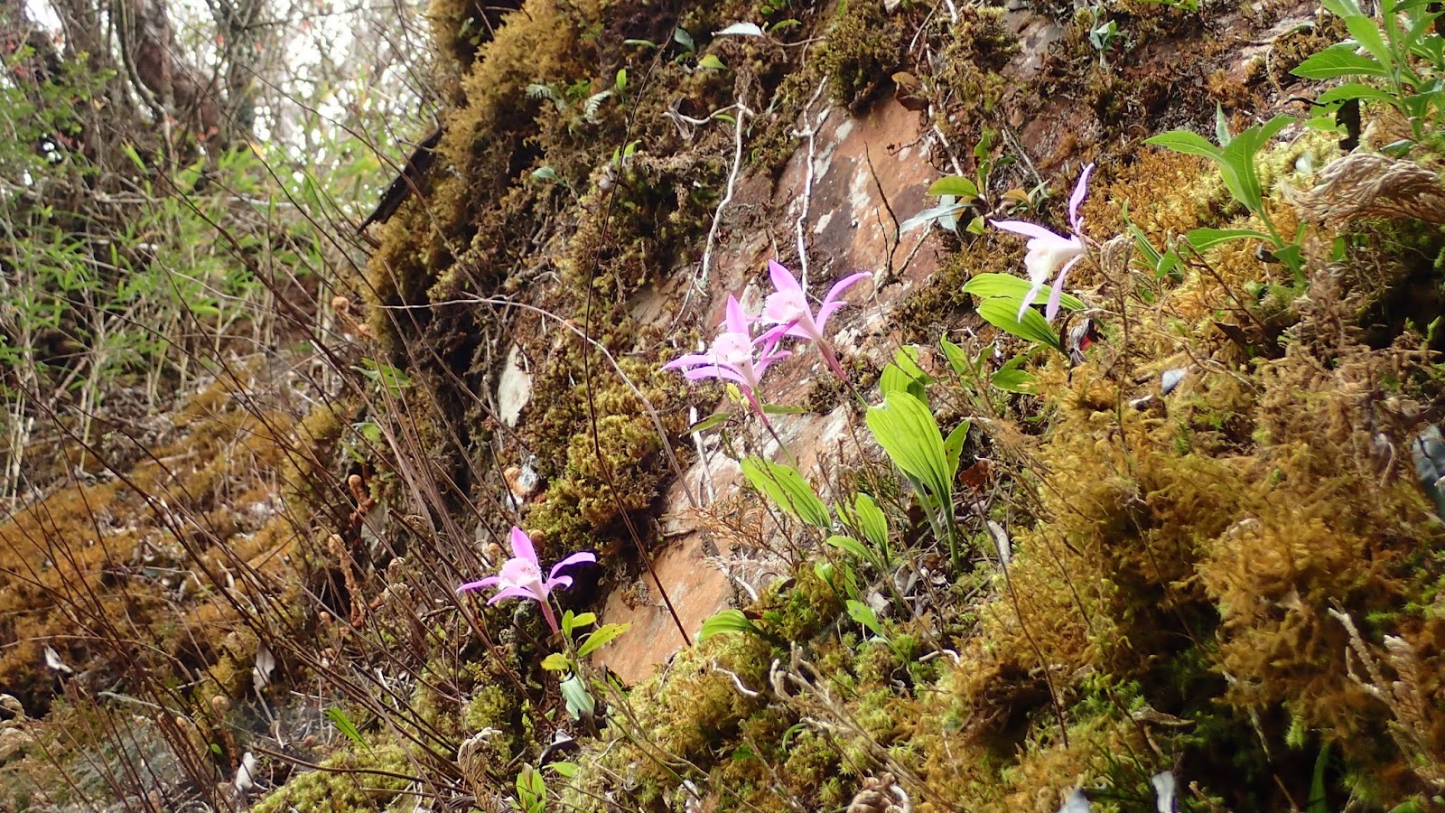 沿路問人, 終於看到一葉蘭了, 在高高的岩壁上吐露著芬芳, 獨不見水晶蘭, 失之交臂了