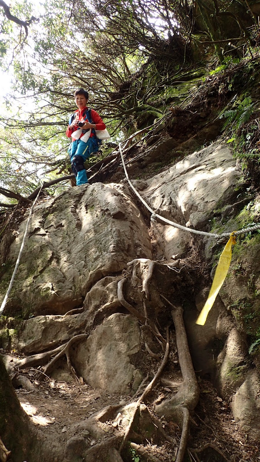 一路都是拉繩陡下, 好在最近有練過, 輕輕鬆鬆