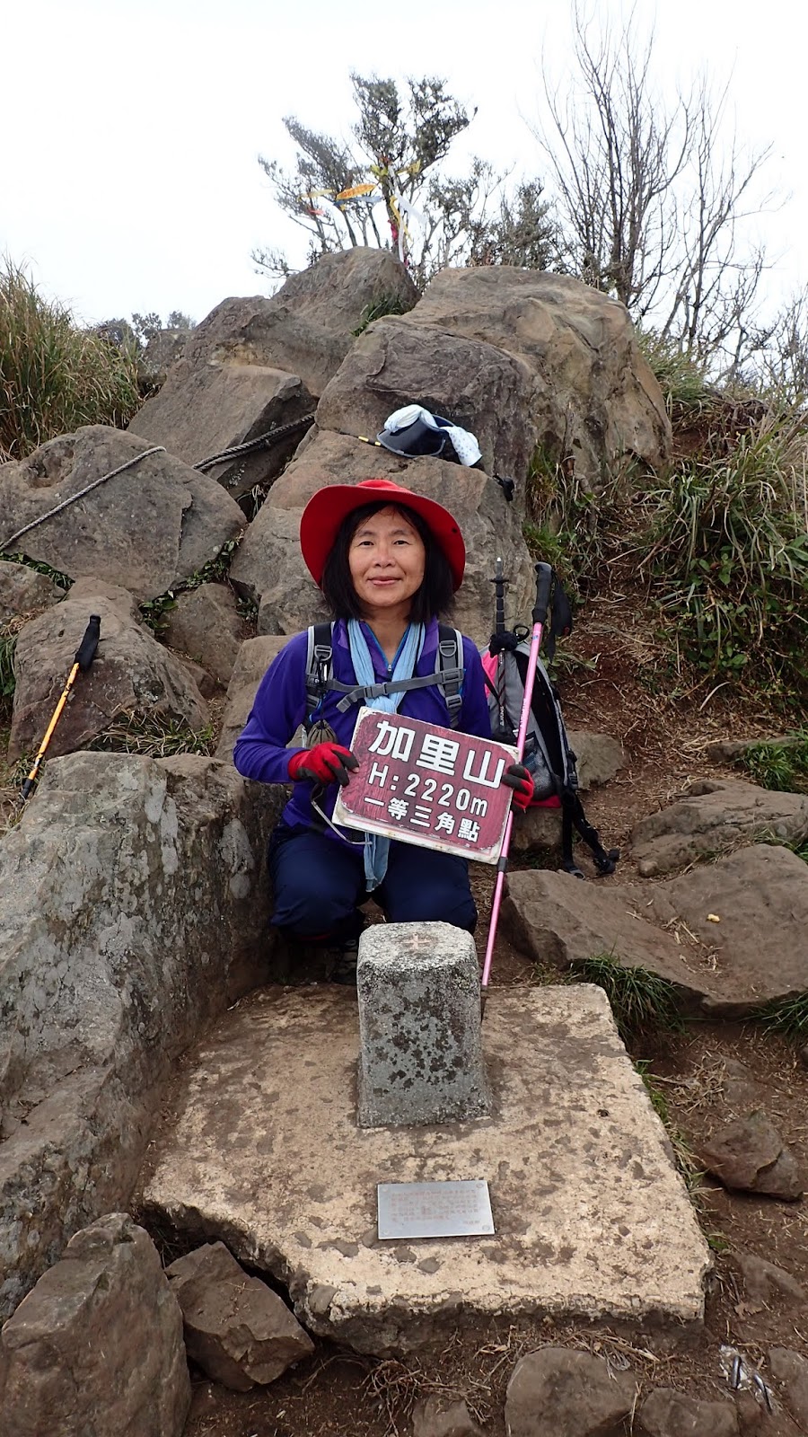 2:00登頂, 加里山海拔2220公尺, 台灣小百岳排名第34號, 一等三角點, 我們來了, 等了一會兒獨不見小潘上來