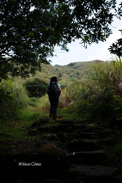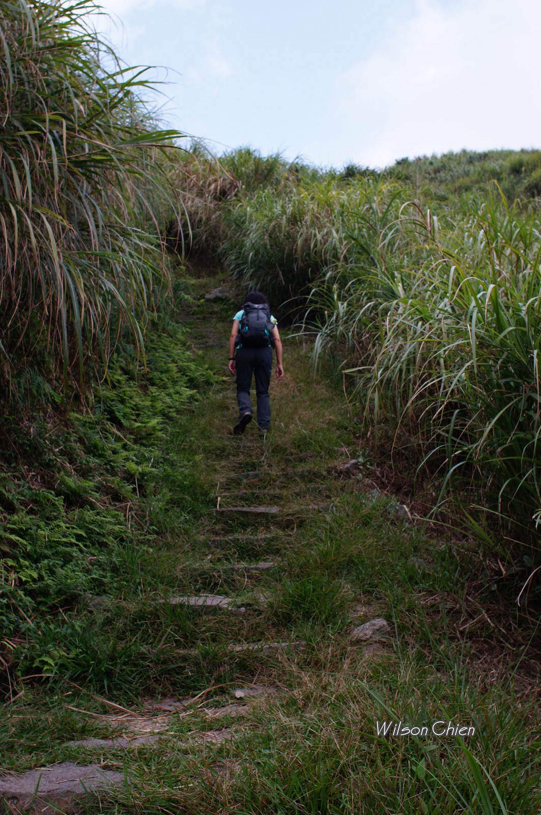 先走魚路古道的石階路此路比較陡幾乎都是直線, 到金包里城門後走一圈擎天崗草原,
