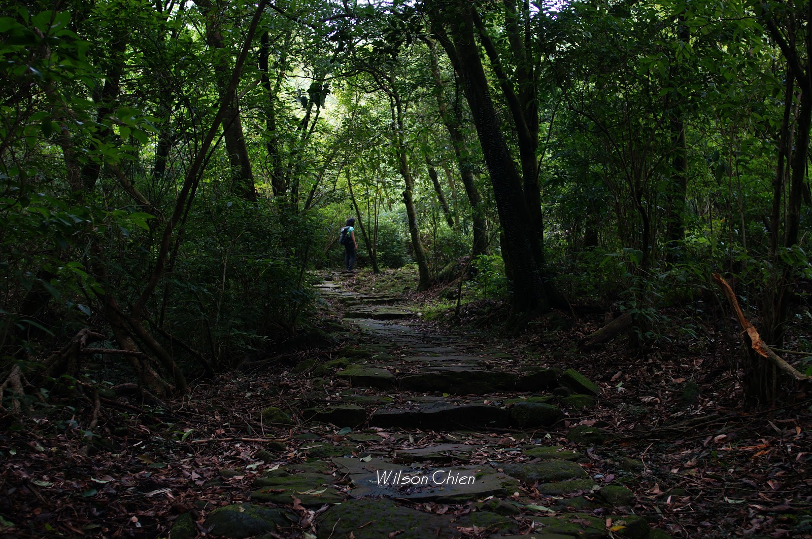 路段由上磺溪停車場至梯田處平緩好走, 穿出樹林後的石階路就是漸陡了,