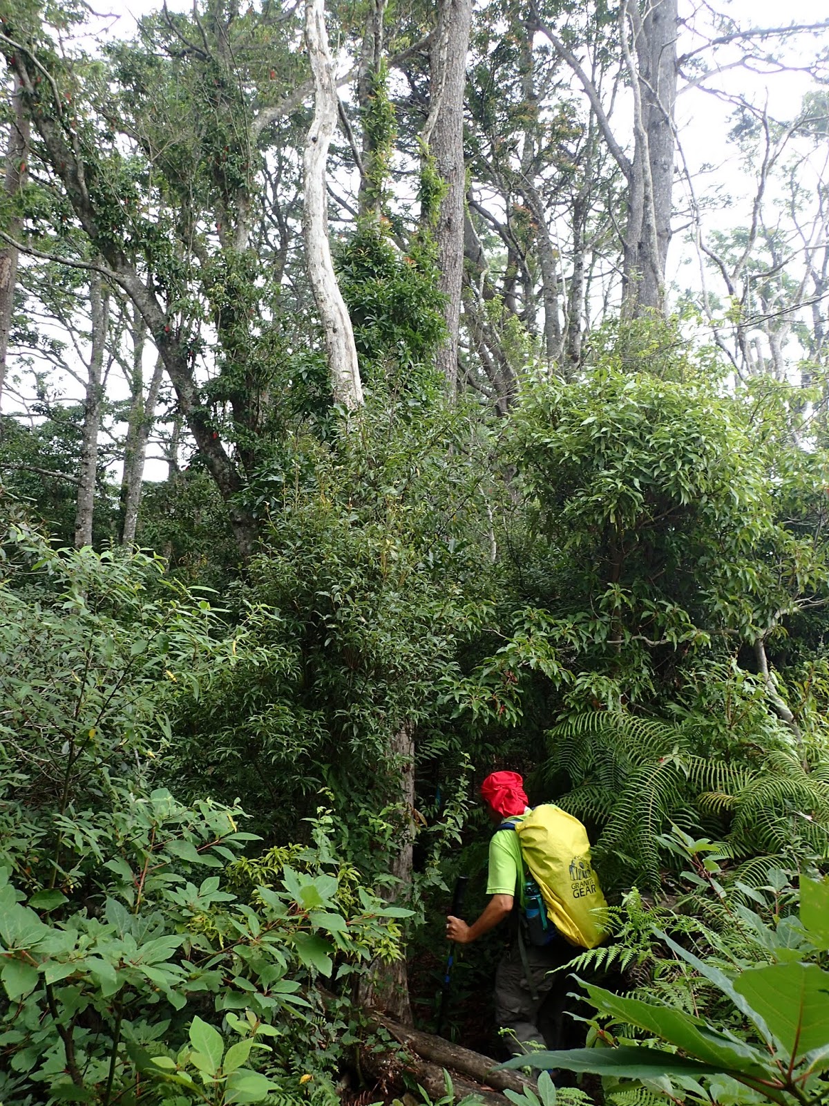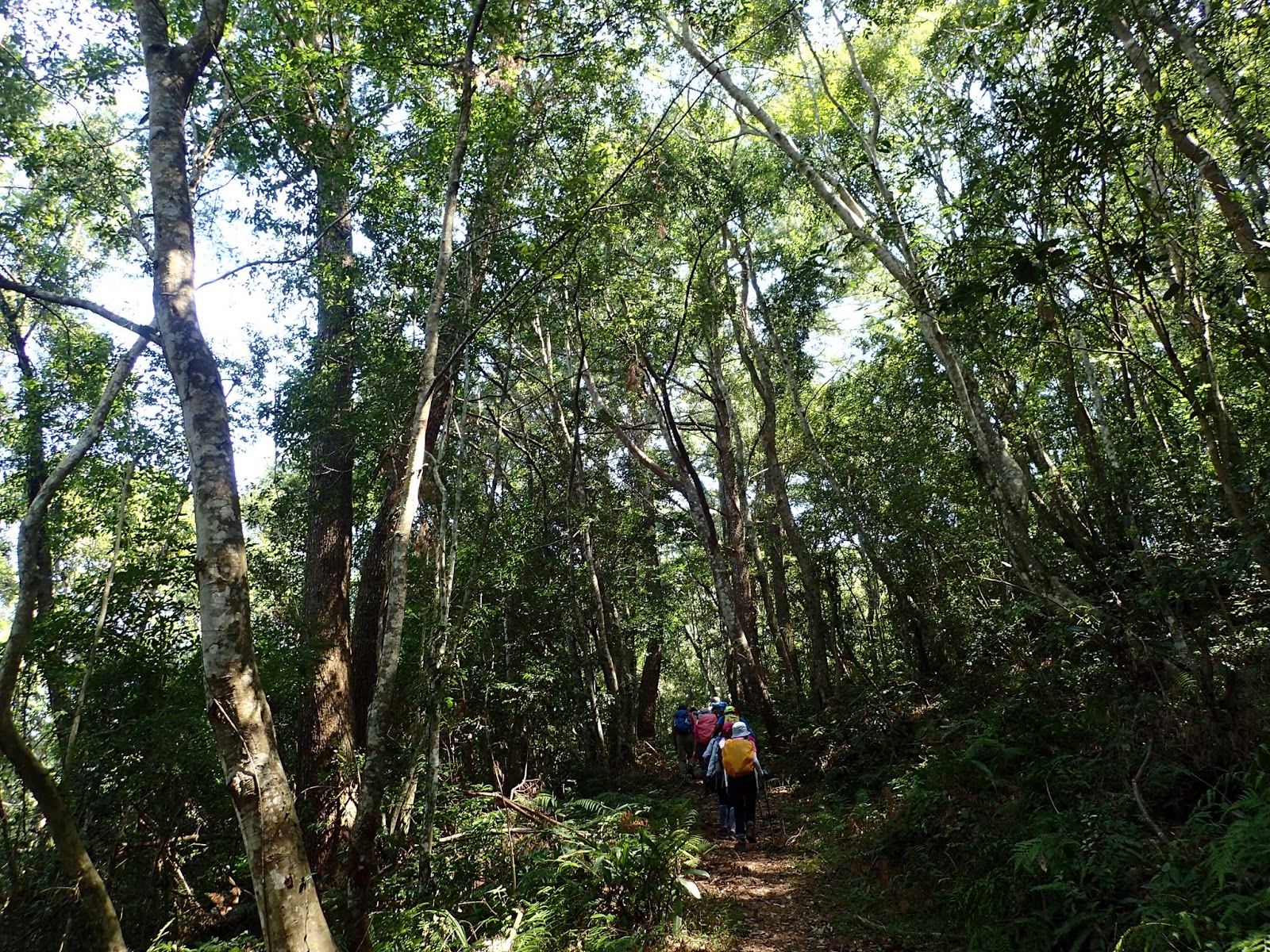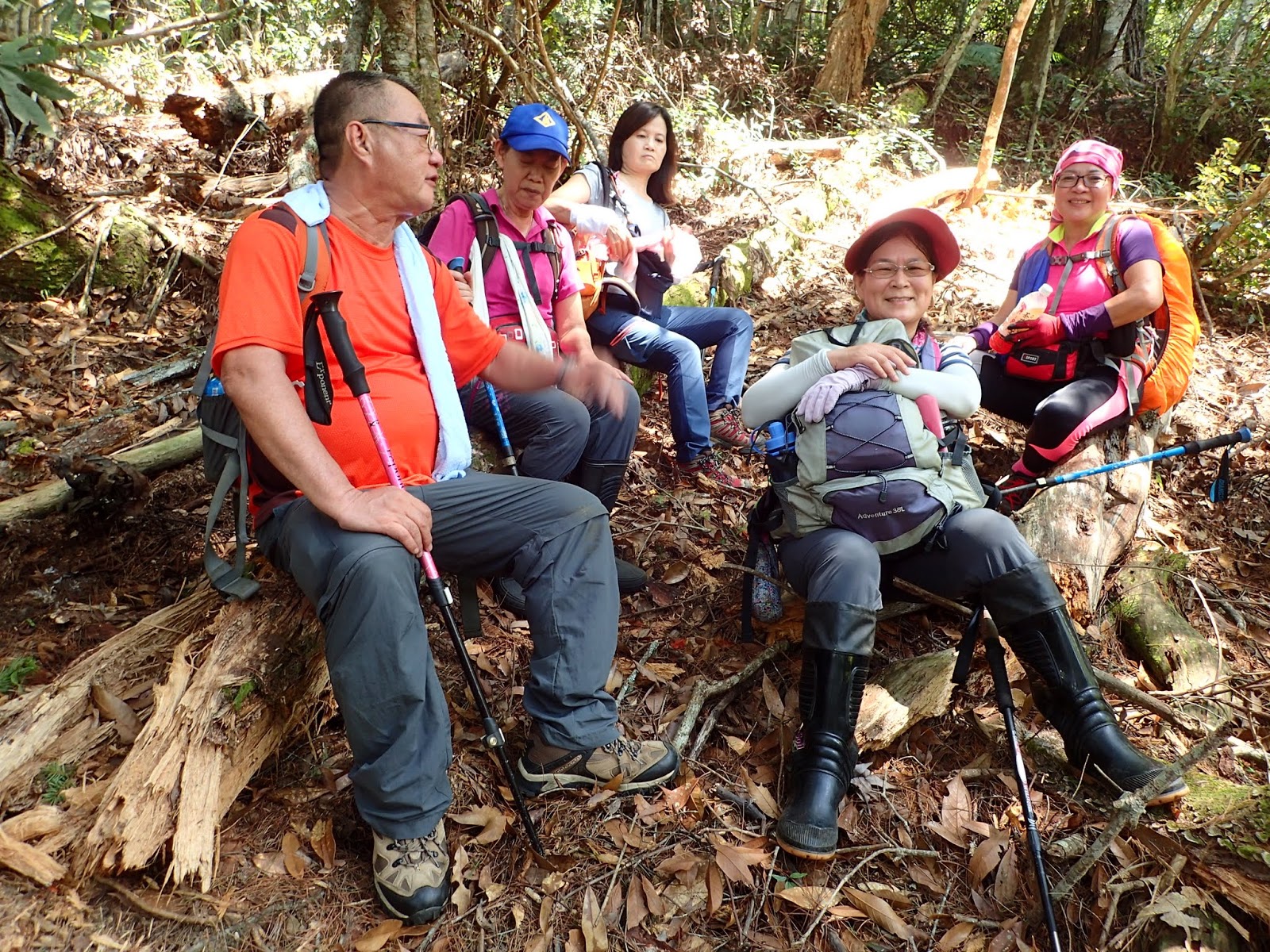 登山口的高度大約700公尺, 一路陡上至芝生毛台山是1789公尺, 落差超過1000公尺, 可想而知回程就是陡下了, 單想就腿軟, 領隊帶我們走一條新闢的山路, 路跡不是很明顯也不好走