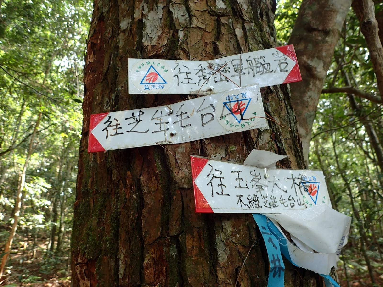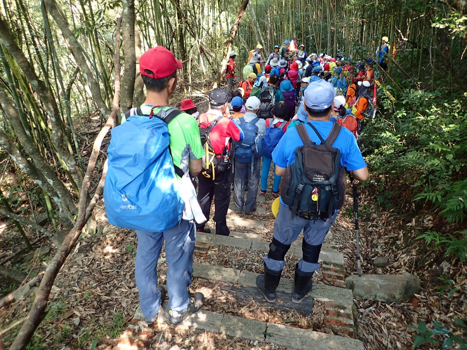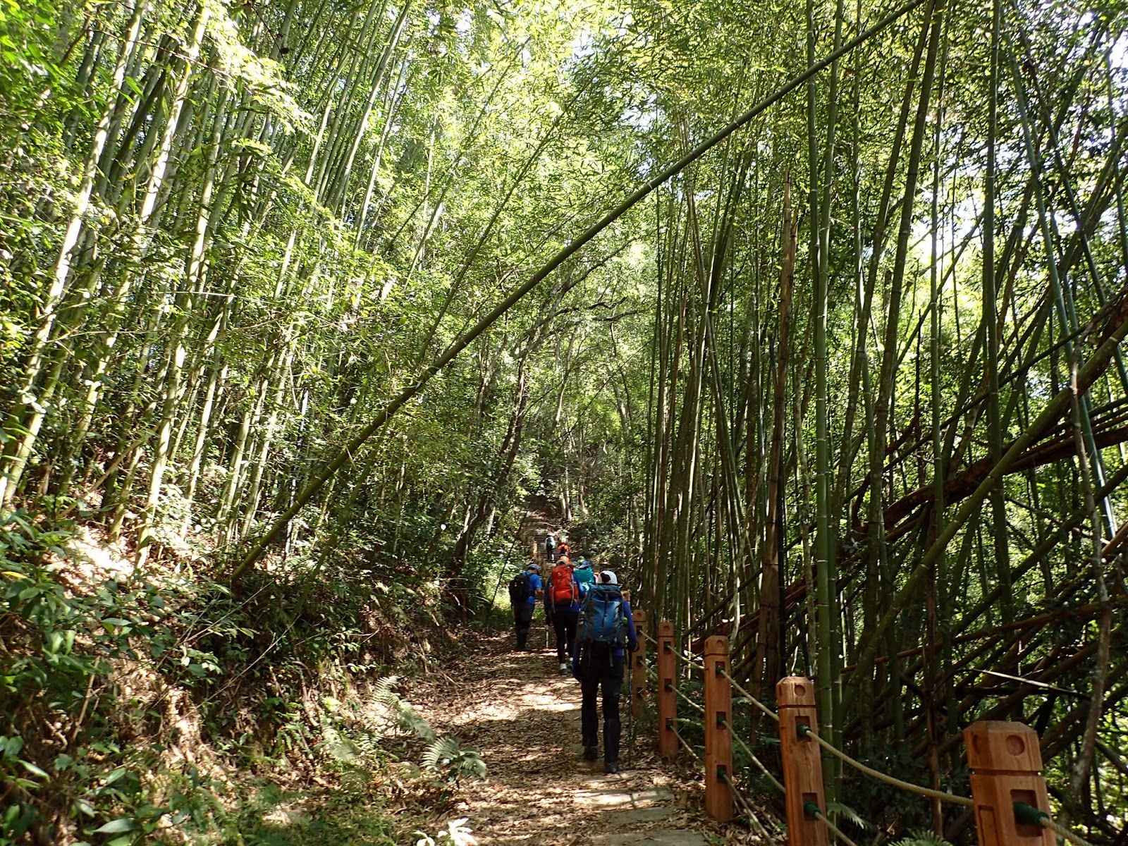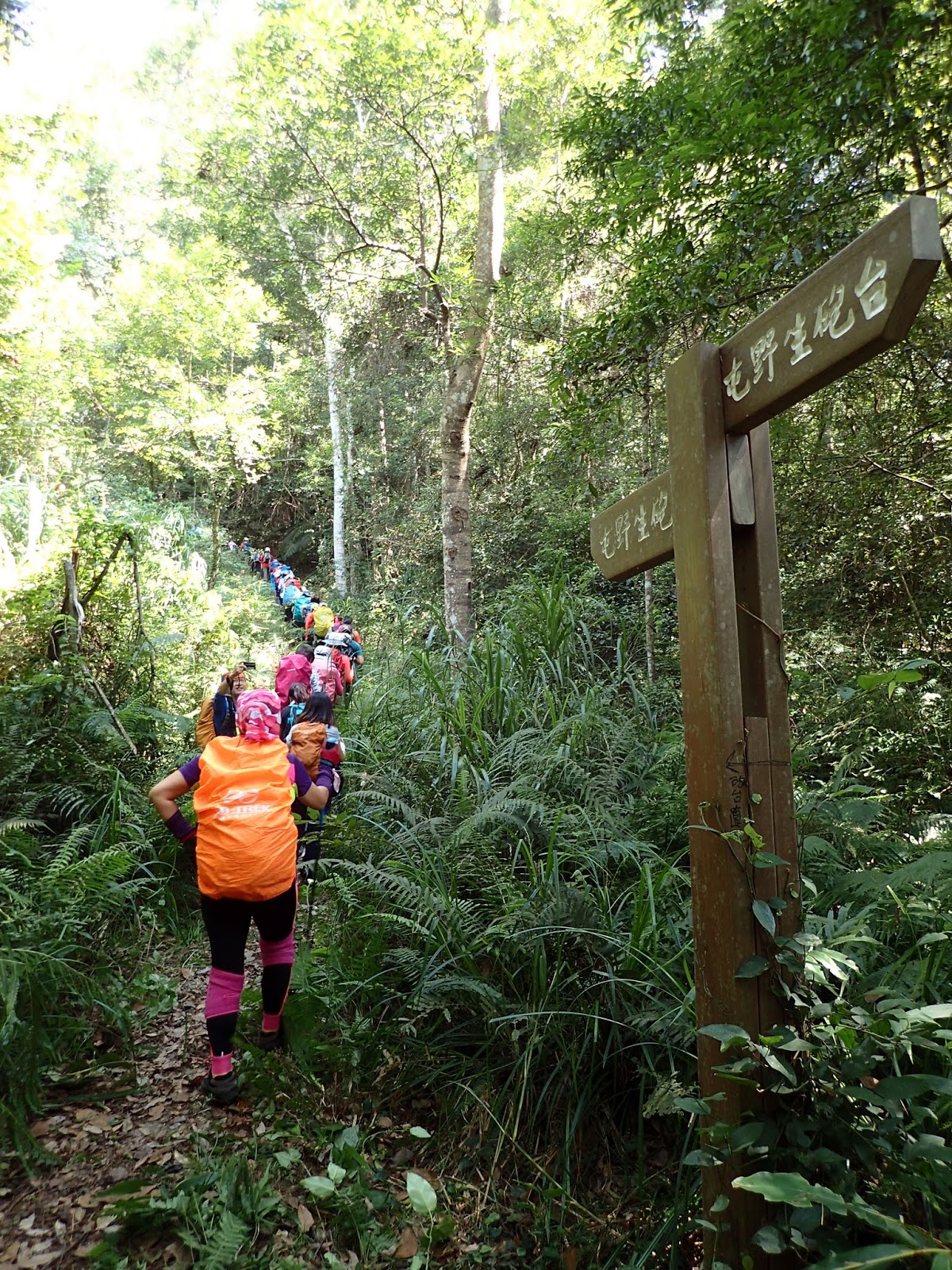 登山口的高度大約700公尺, 一路陡上至芝生毛台山是1789公尺, 落差超過1000公尺, 可想而知回程就是陡下了, 單想就腿軟, 領隊帶我們走一條新闢的山路, 路跡不是很明顯也不好走