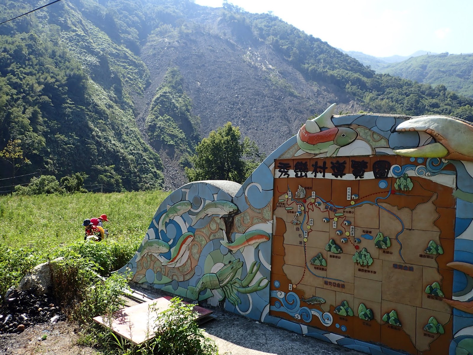 部落的彩繪獨具特色, 小巴就在前方等著, 吃了山友請的小西瓜後換上乾爽的衣服