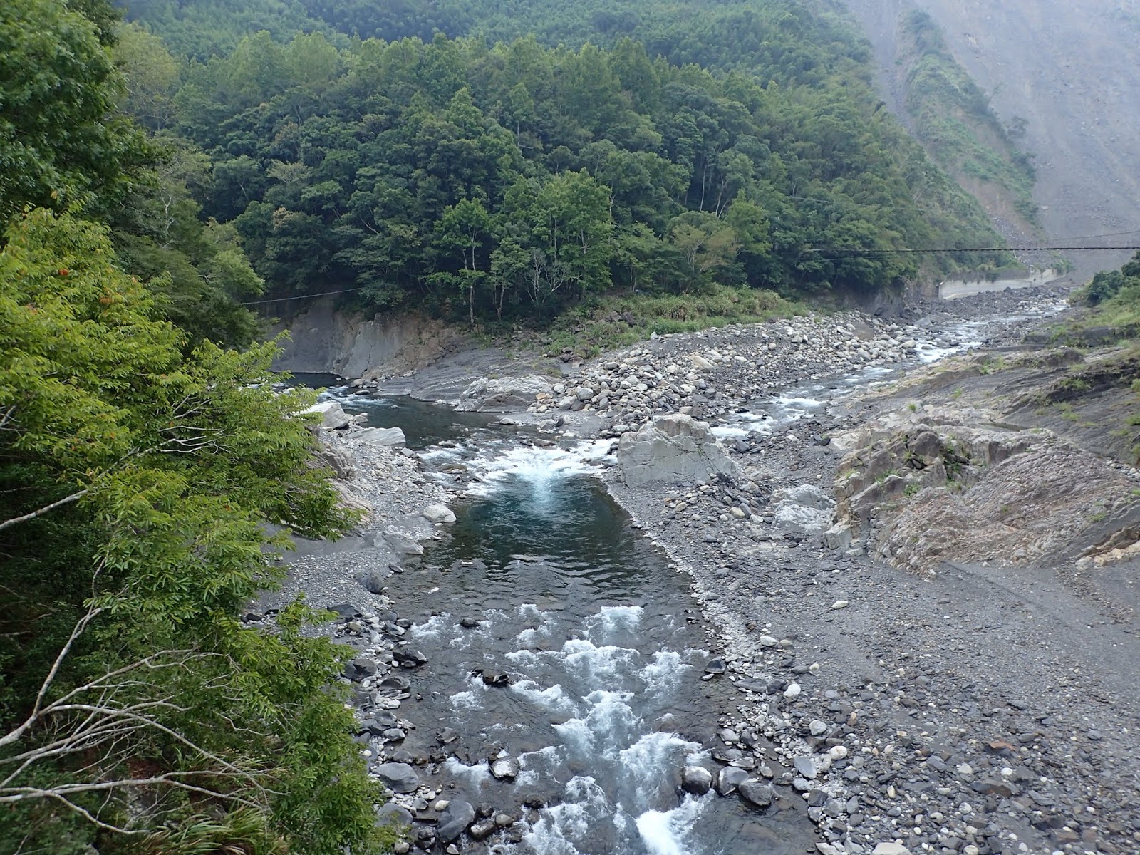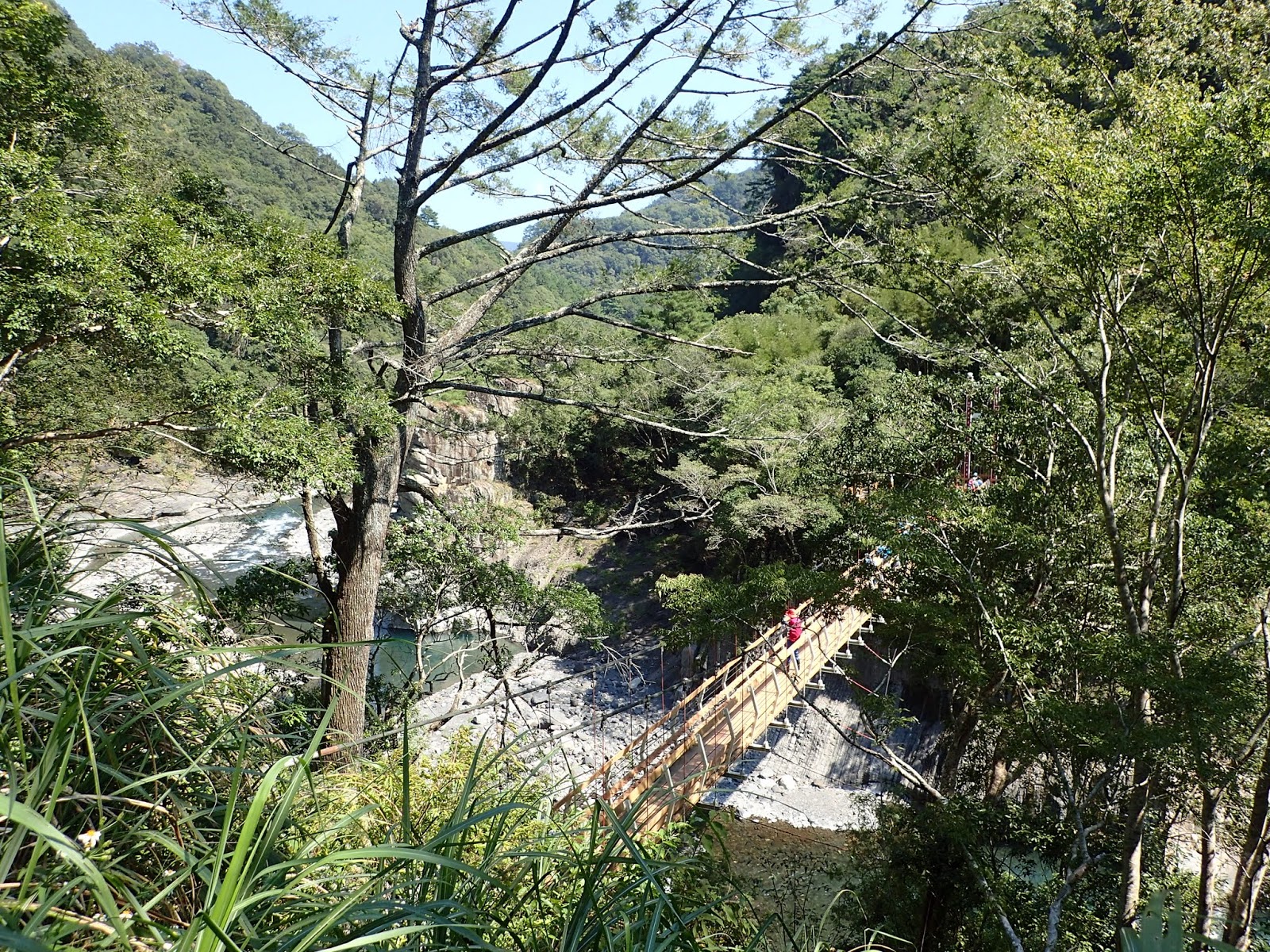 碧藍色的溪水看起來十分的清澈, 軍鑑岩垂直矗立在旁非常壯觀