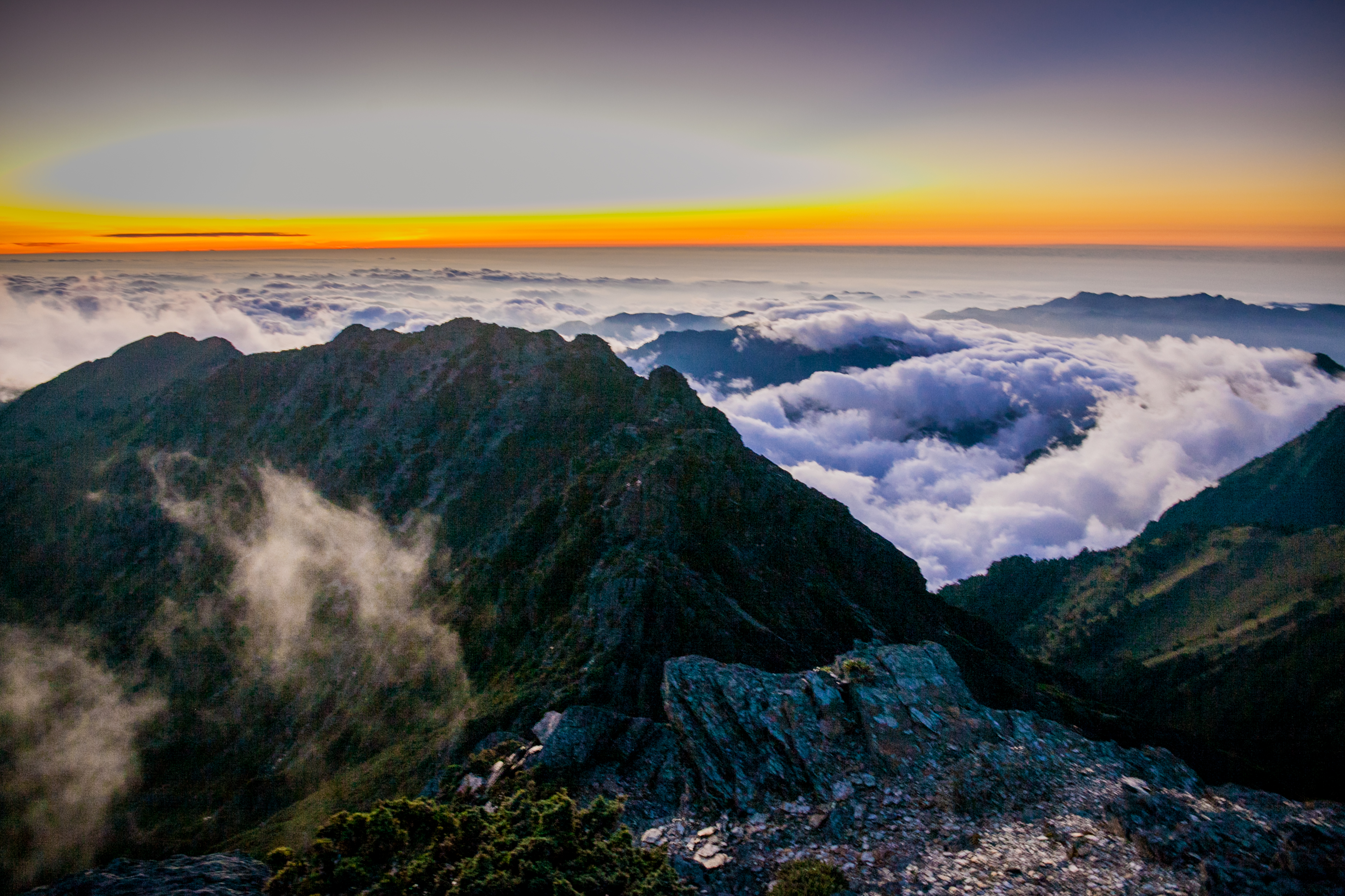 一直貪戀著雲海不肯回山屋,看著遠方的雲海漸漸變色。超美的。