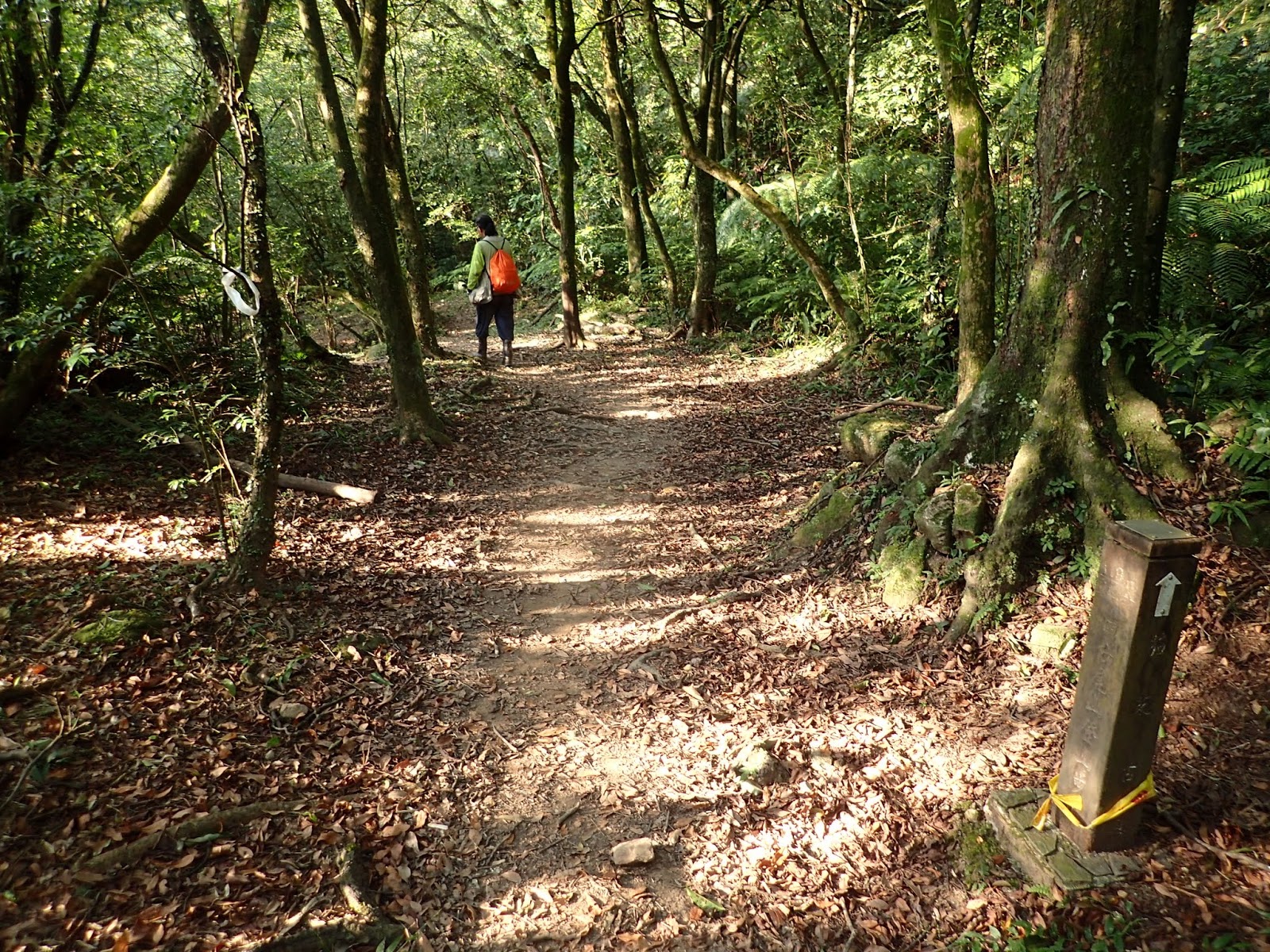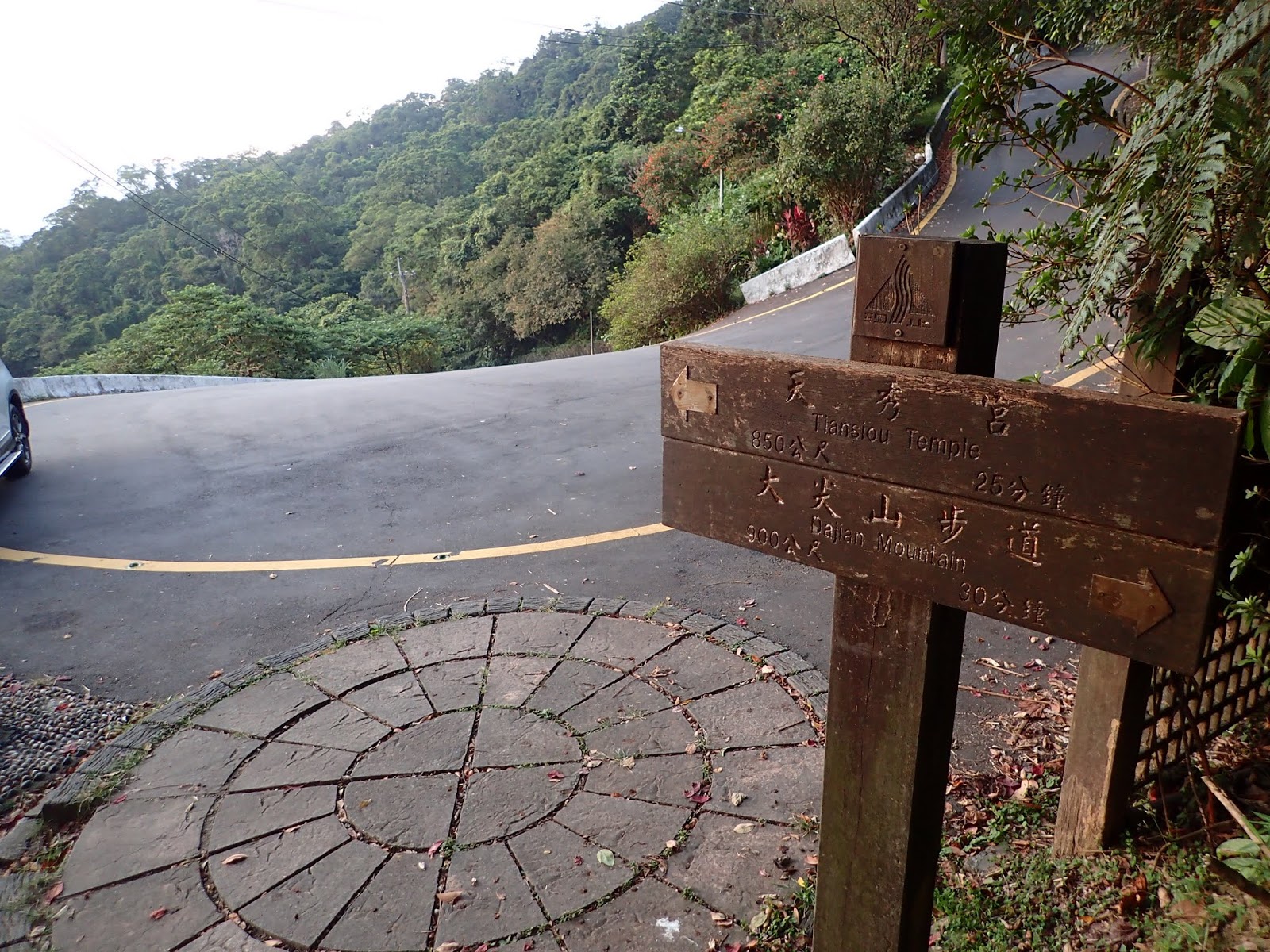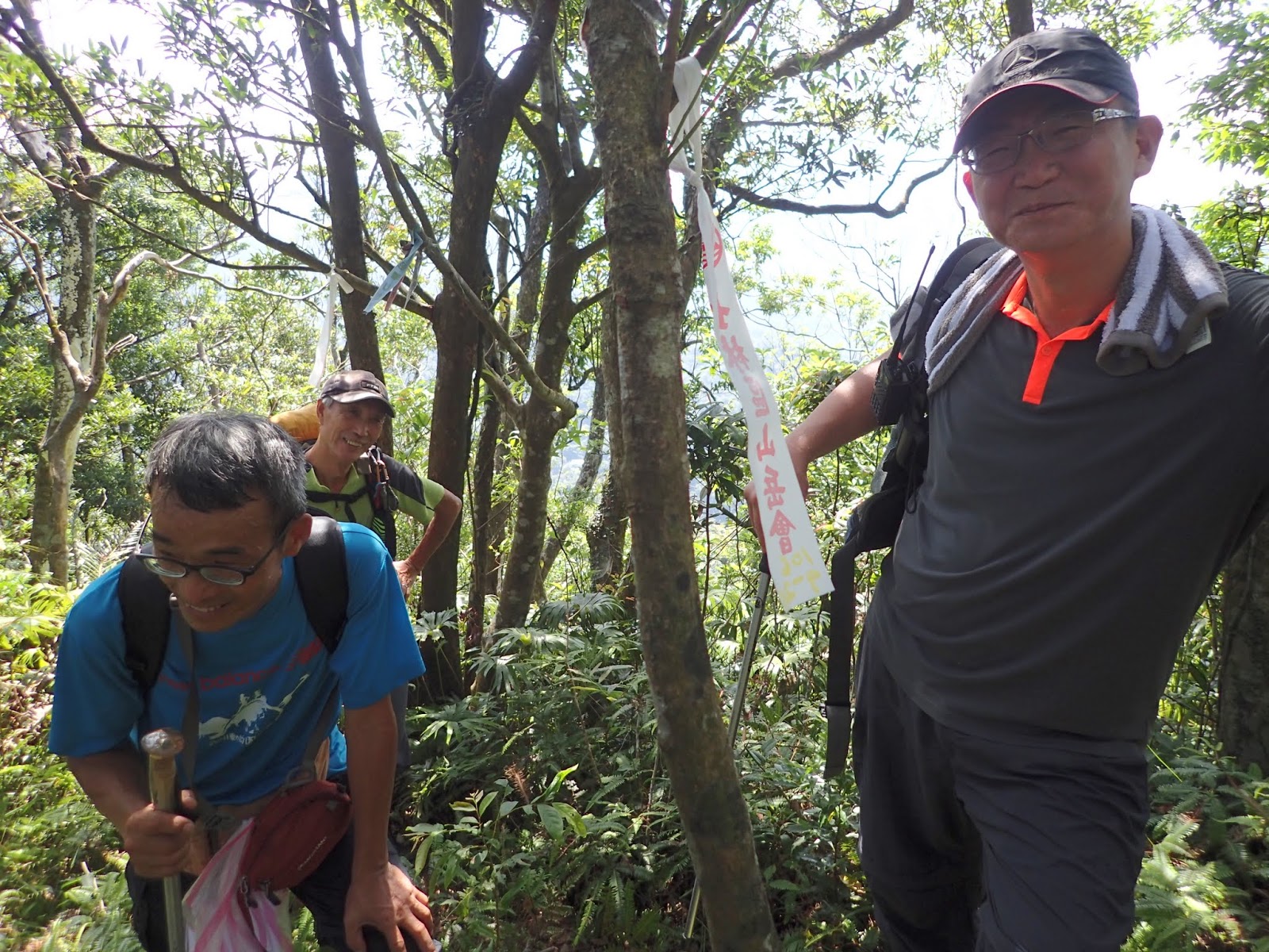 正在徬徨猶豫時遇到附近正在運動的山友, 說已落後其他山友很久了, 如往大尖山天秀宮還要走很久, 介紹我走捷徑, 怕我獨行不認識路, 乾脆帶我走