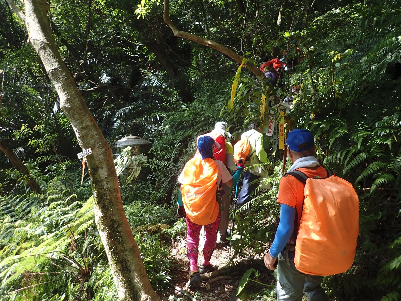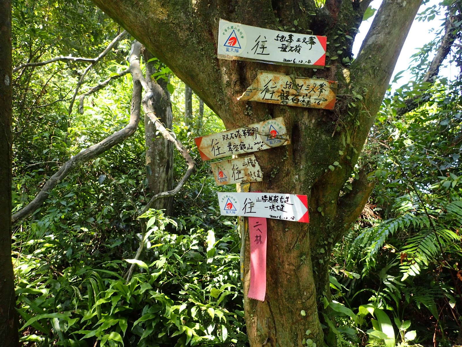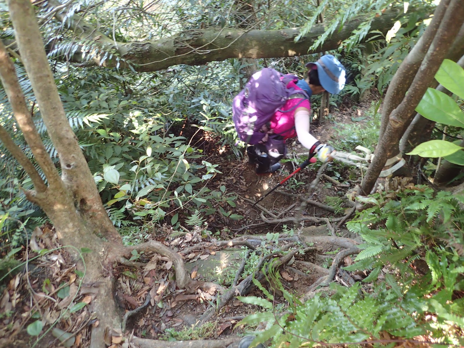 正在徬徨猶豫時遇到附近正在運動的山友, 說已落後其他山友很久了, 如往大尖山天秀宮還要走很久, 介紹我走捷徑, 怕我獨行不認識路, 乾脆帶我走