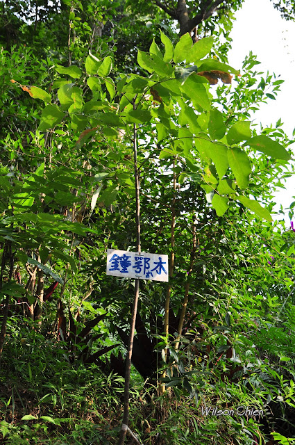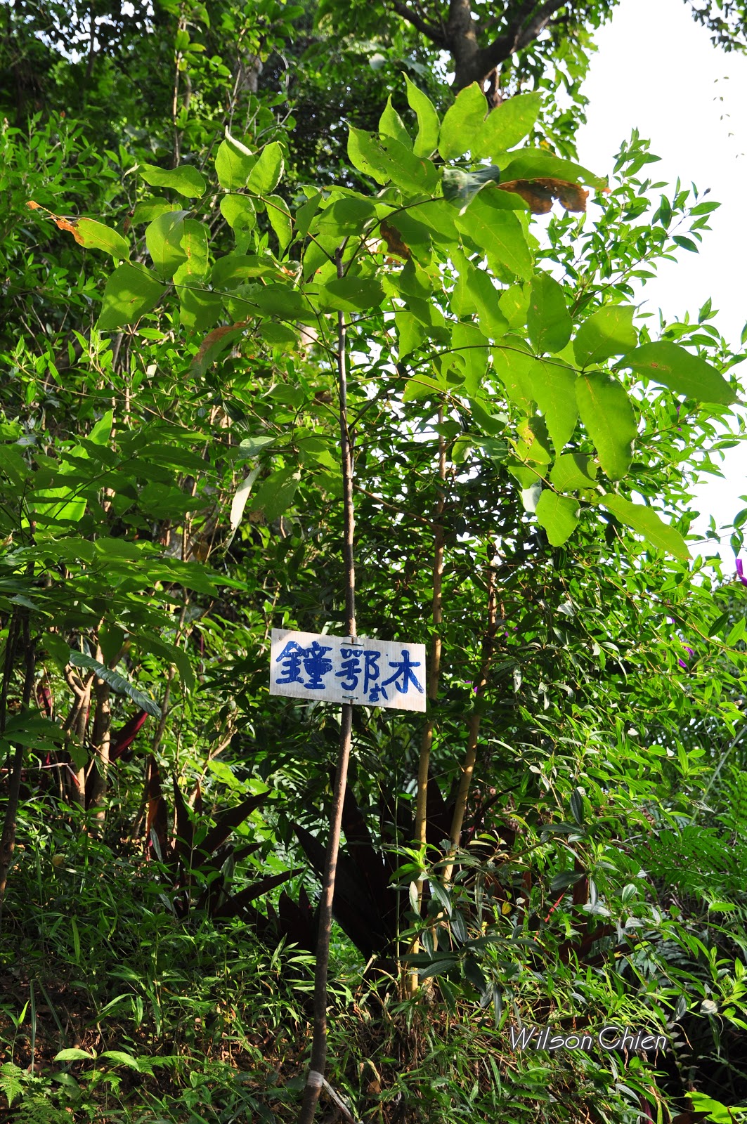 鐘萼木的牌子立於路旁, 先前走金字碑與大粗坑古道時皆沒見著, 不過如果沒這牌子我們也不識此植物,