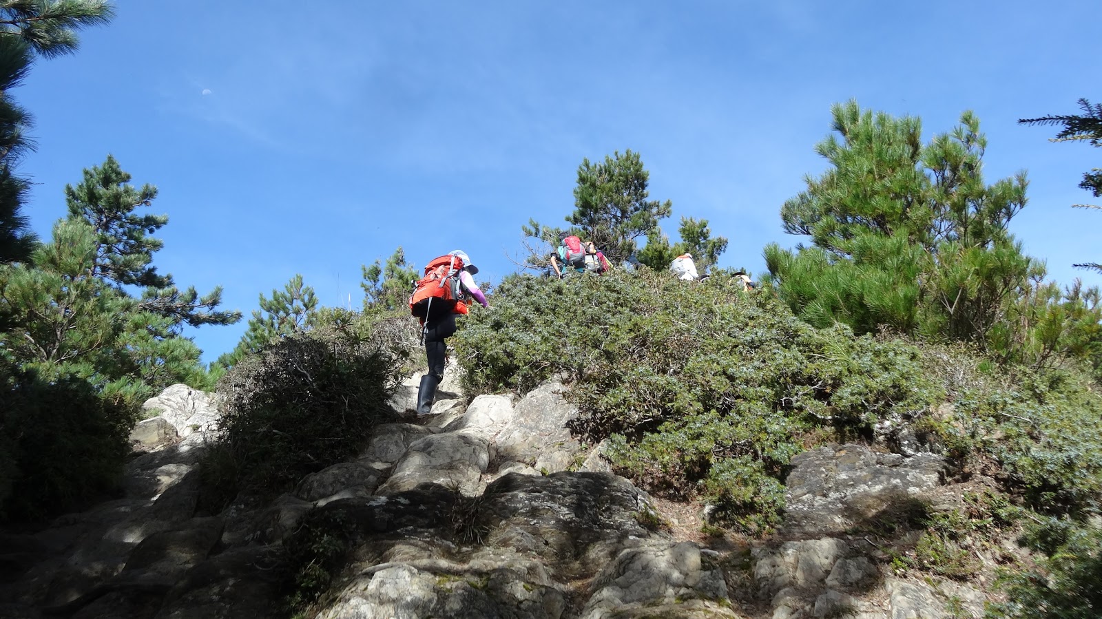 押隊黃怡盛眼看已落後前方一大截, 為了加速會合, 只好拖著我往上走, 嘿嘿, 果真省力不少, 早知前頭那段陡坡就該死賴給他了